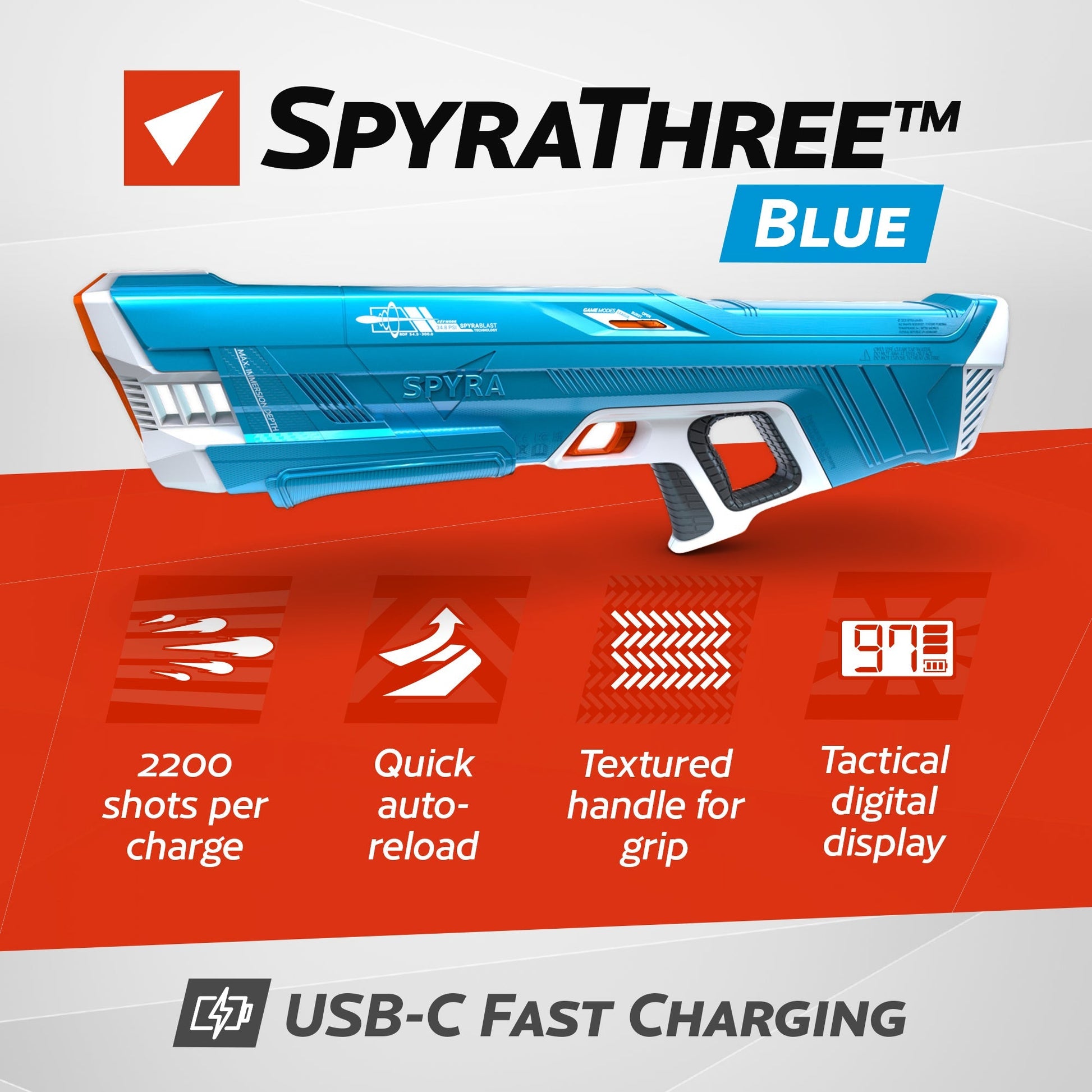SPYRA Electric Water Blaster Outdoor Squirt Gun for Pool Games, SpyraThree, Blue