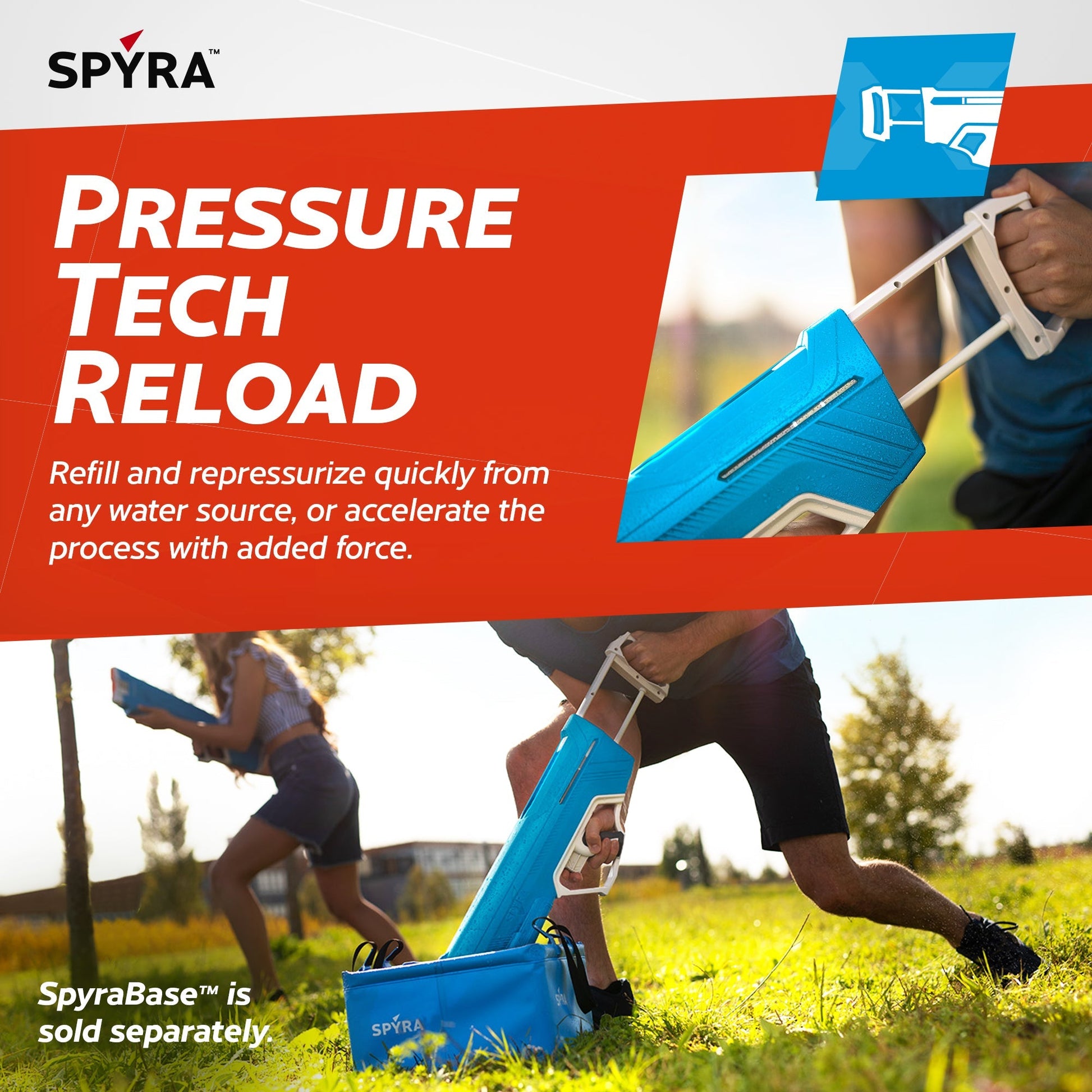 Reloading is a breeze with the SpyraLX's innovative PressureTech system. Simply dip the front of the blaster into any water source, and pump – the internal mechanism will repressurize the tank in a matter of seconds, ensuring you're always ready for the next wave of aquatic onslaught.