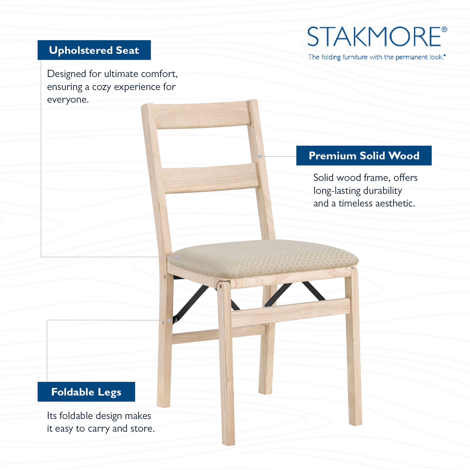 Stakmore Classic Upholstered Seat Solid Folding Chairs, Set of 2, Unfinished