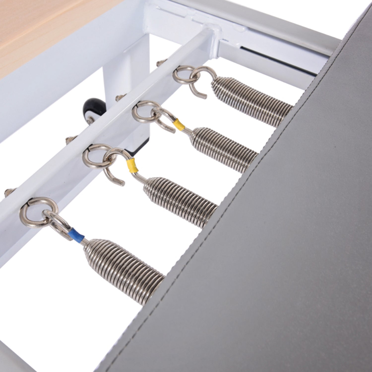 Designed with precision in mind, this reformer is constructed with aluminum rails and ball-bearing rollers for smooth platform movement. The smooth movement puts you in control of your range of motion and repetitions for a powerful workout.