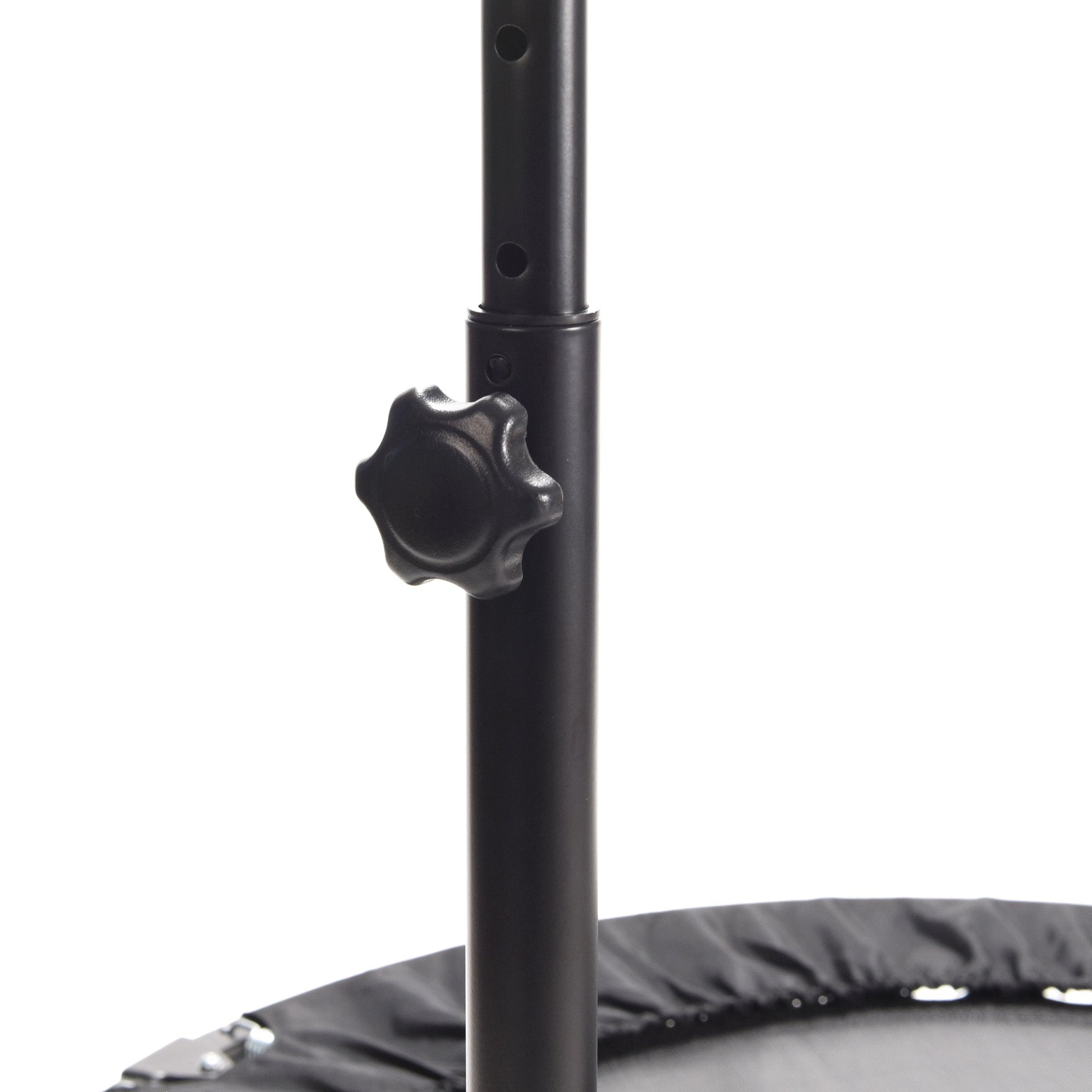 Elevate your fitness journey with the 40-inch inMotion Trampoline with Adjustable Handlebars. Designed for fun, effective workouts, this trampoline offers a spacious jumping surface and added stability for users of all fitness levels. The handlebars feature 5 height adjustments, ensuring a comfortable and secure grip for everyone in your household. Whether you're improving cardiovascular health, building strength, or enhancing balance, this trampoline is the perfect low-impact solution. Its durable design and easy assembly make it a must-have for your home fitness routine. Built with a reinforced steel frame and high-tension springs for lasting performance, this fitness trampoline features a quiet bounce, ensuring reliable equipment for your home gym.