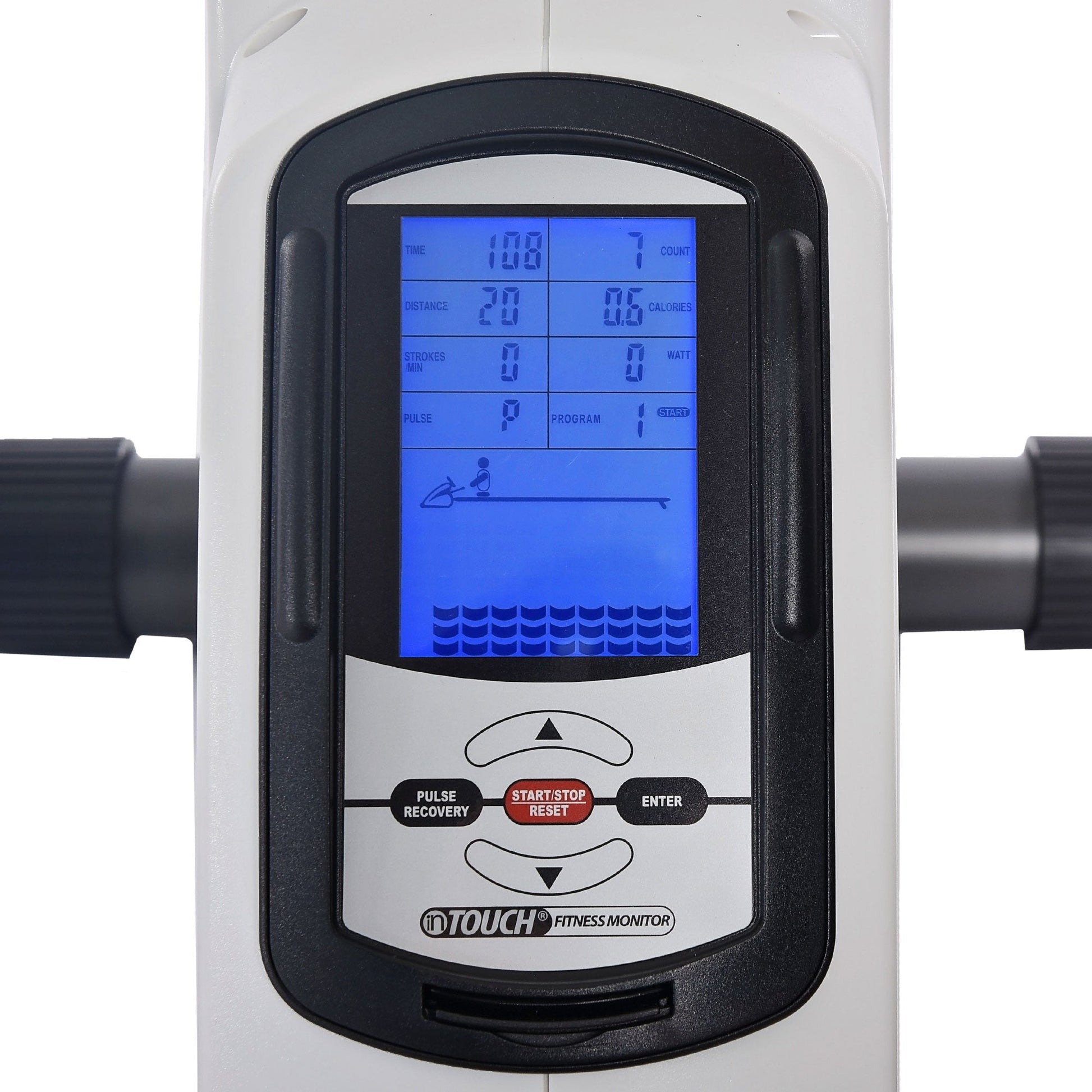 - Backlit InTouch Fitness LCD monitor, which tracks time, count, distance, calories, strokes per minute, pulse, and watt