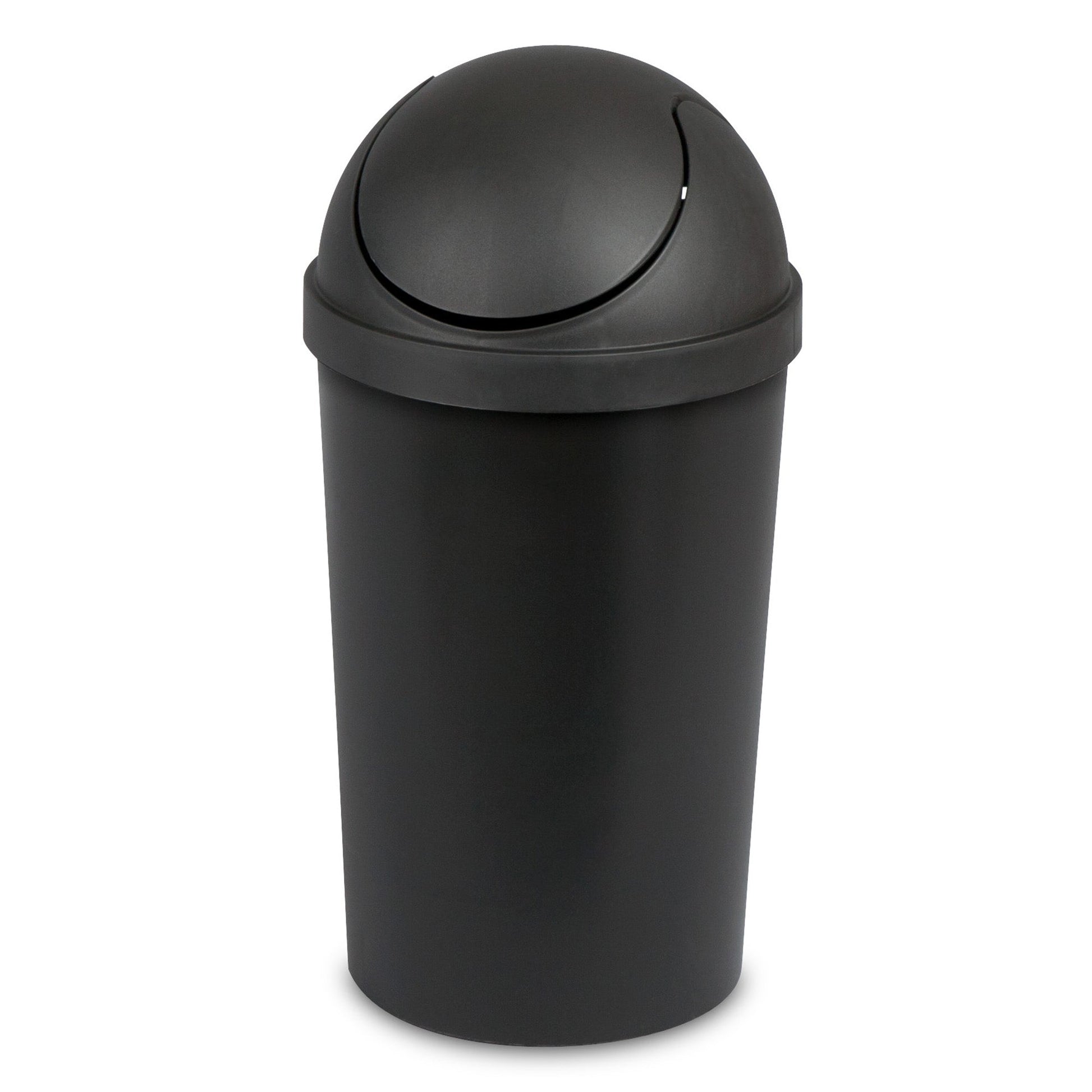 This dome-top wastebasket is ideal for smaller spaces and is great for use in the home or kitchen. The trash can features a round shape and domed-lid design that swings open and closed when pushed, for both large and small items.