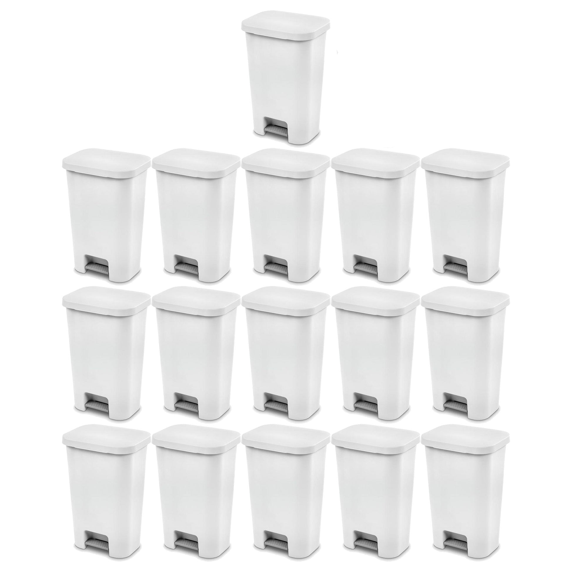 Sterilite 11.9 Gal Rectangle Step On Trash Kitchen Wastebasket, White (16 Pack)