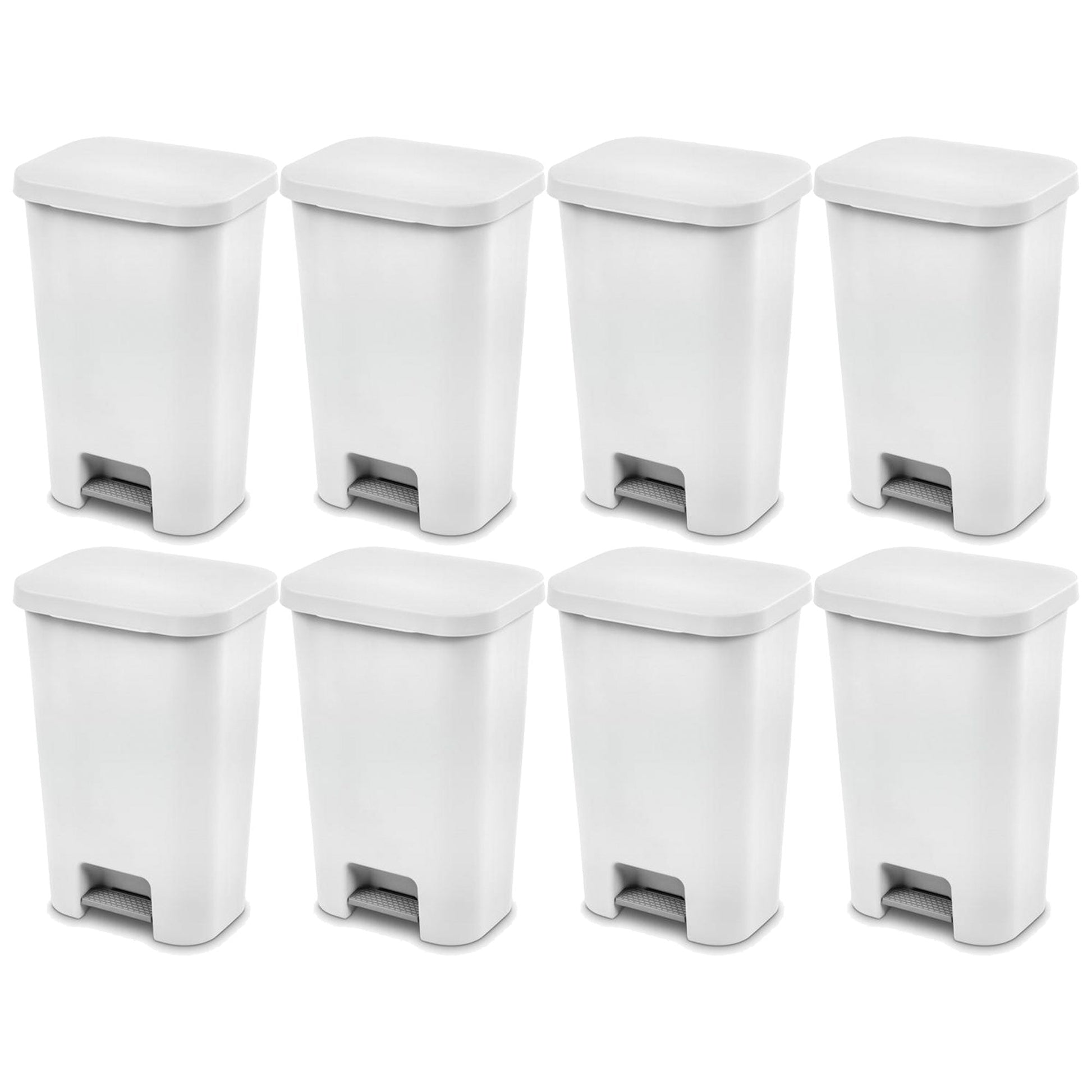 Sterilite 11.9 Gal Rectangle Step On Trash Kitchen Wastebasket, White (8 Pack)
