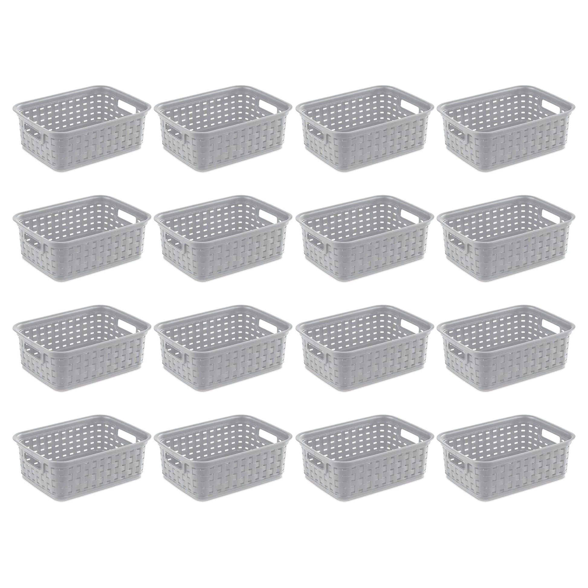 Sterilite 11" Small Weave Open Bin Organize Wicker Storage Basket, Grey, 16 Pack
