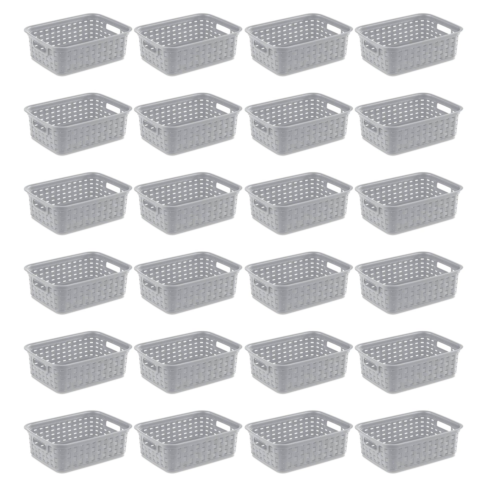 Sterilite 11" Small Weave Open Bin Organize Wicker Storage Basket, Grey, 24 Pack