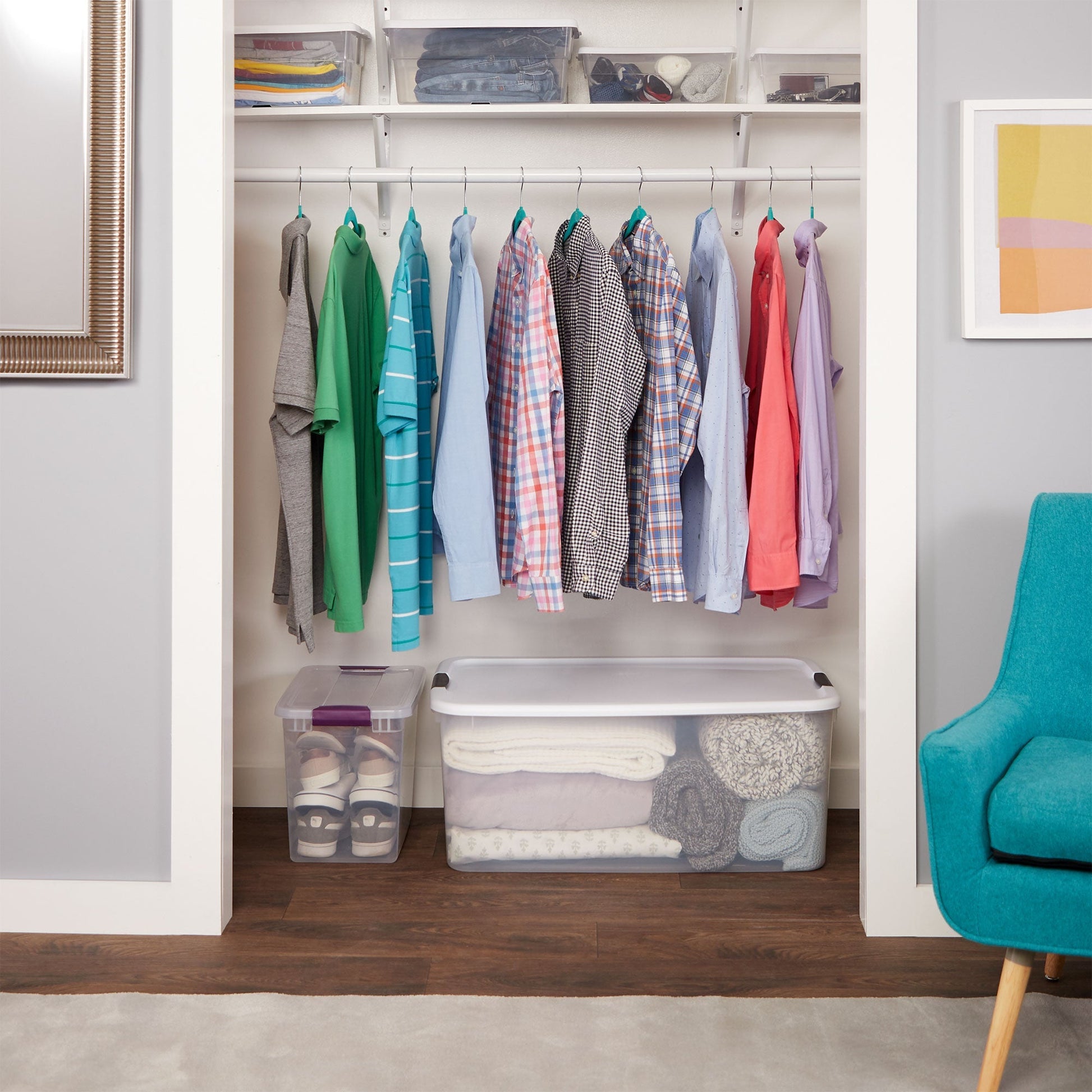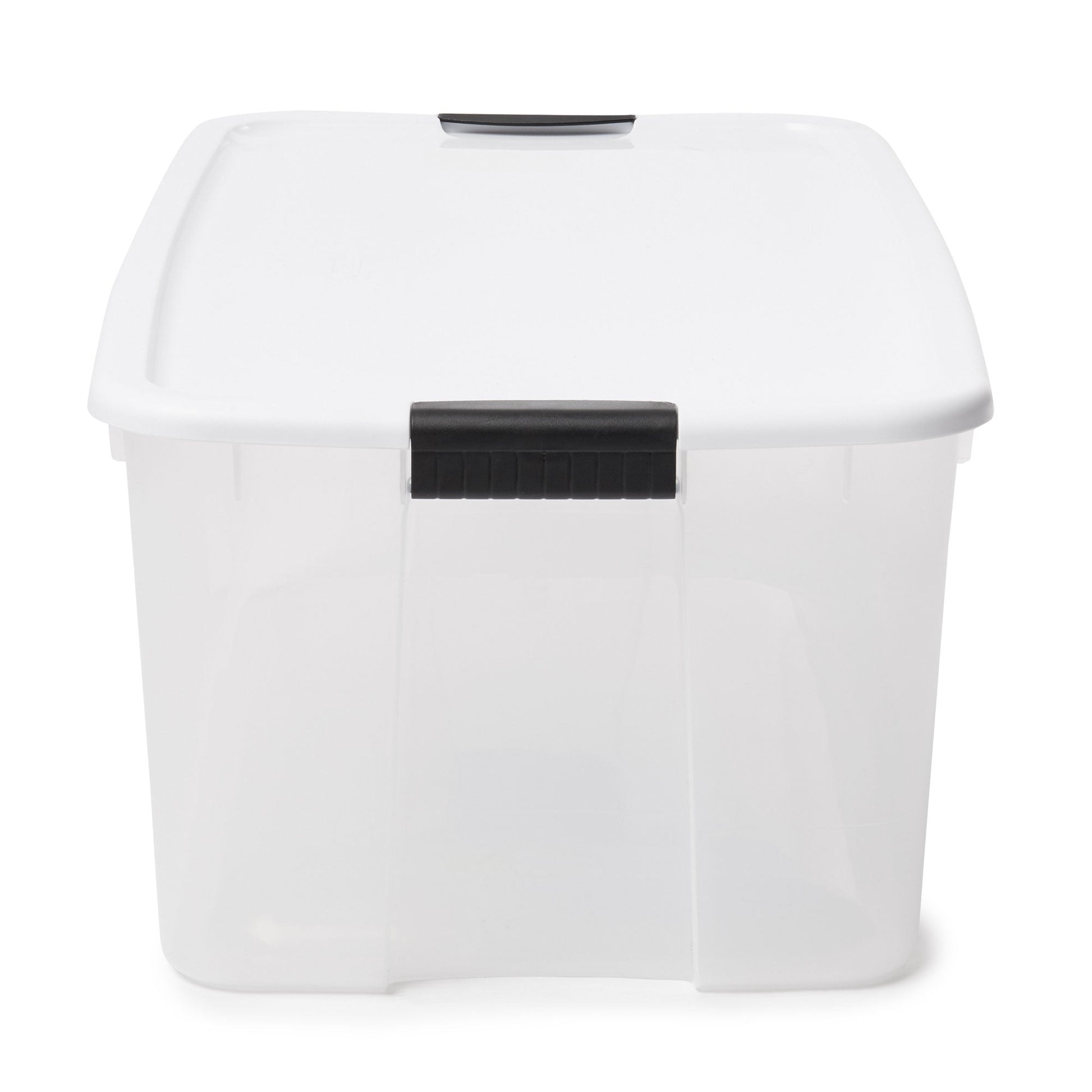 Bring total organization to your home storage system with the Sterilite 116-quart Latch Totes. These versatile large storage bins with lids help you streamline and declutter your living spaces while maintaining a tidy and accessible environment.