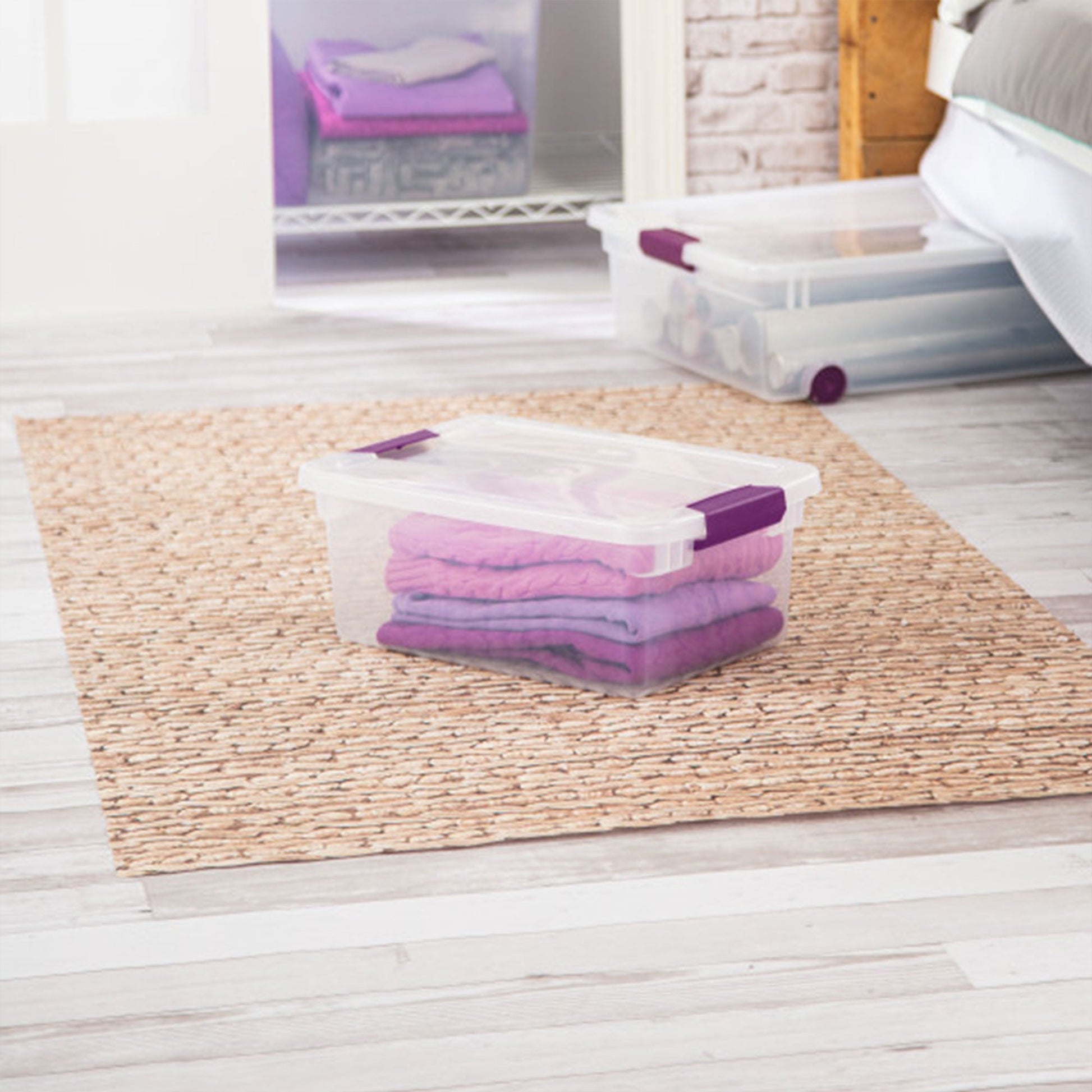 Multi-use and ideal for storing blankets and other bulky items around the home, these storage totes feature ergonomic latches that attach the lid securely to the base, yet are still easy to unlatch. With a see-through base and lid, they allow contents to be easily identified from any angle. Indexed lid allows multiple bases to stack on top of each other securely for efficient storage. Their contemporary styling with ergonomic, color-coordinated latches adds visual appeal to everyday assortment. Durable and built for long-term storage, you can rest assured that your items will remain safe from dust, dirt, or debris, even when stored in uninsulated spaces such as unfinished basements, garages, or exterior storage rooms.
