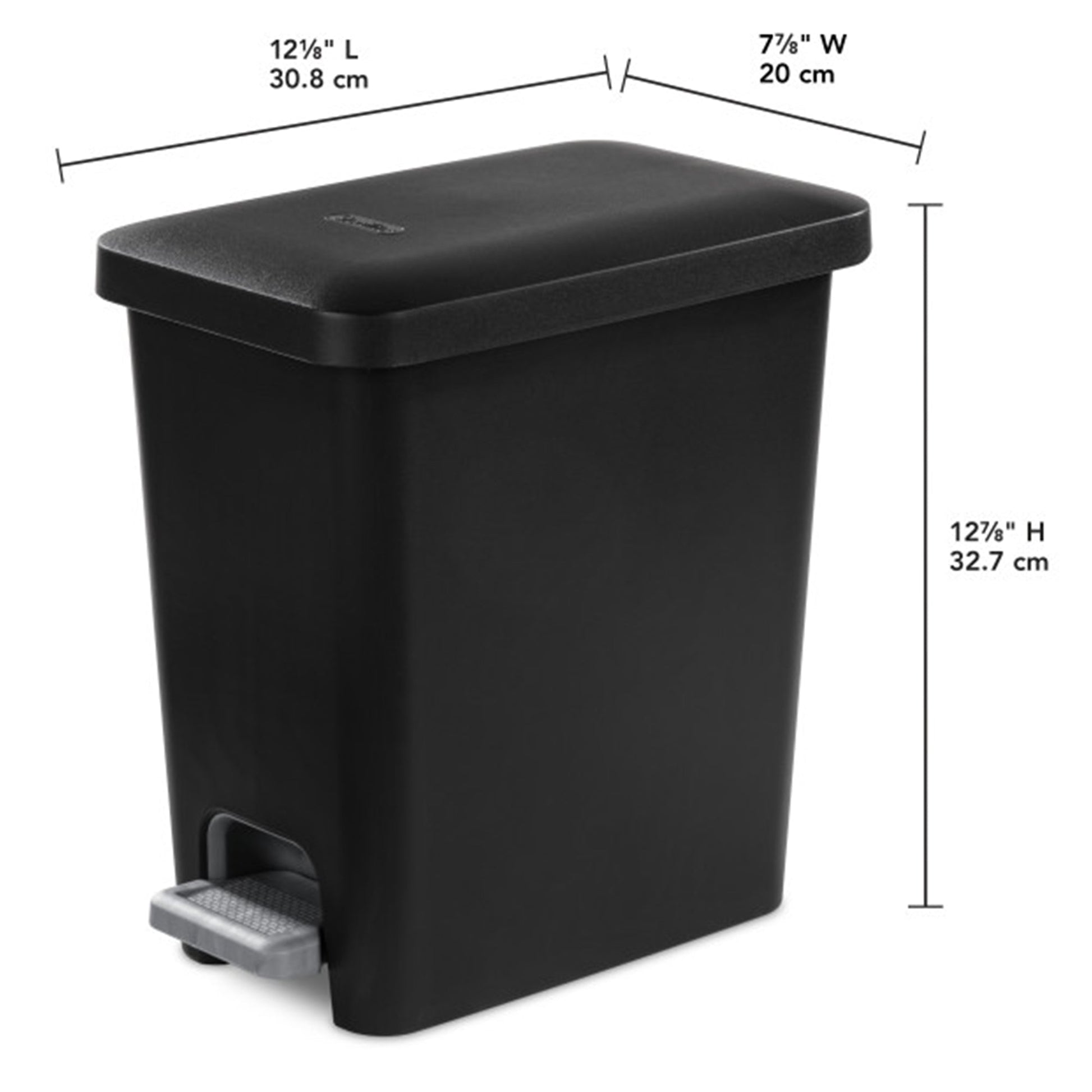 Sterilite 2.7 Gallon Rectangular Step On Trash Bin Wastebasket, Black (6 Pack)