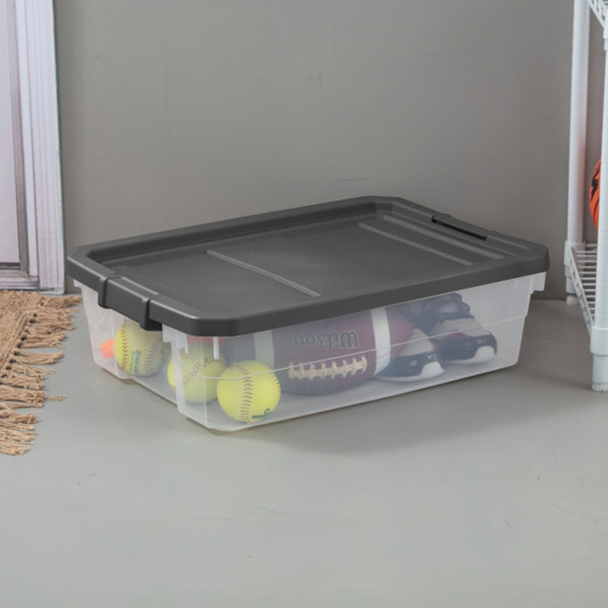 Sterilite 40 Quart Plastic Under Bed Storage Bin Tote & Latch Lid, 6 Pack, Gray