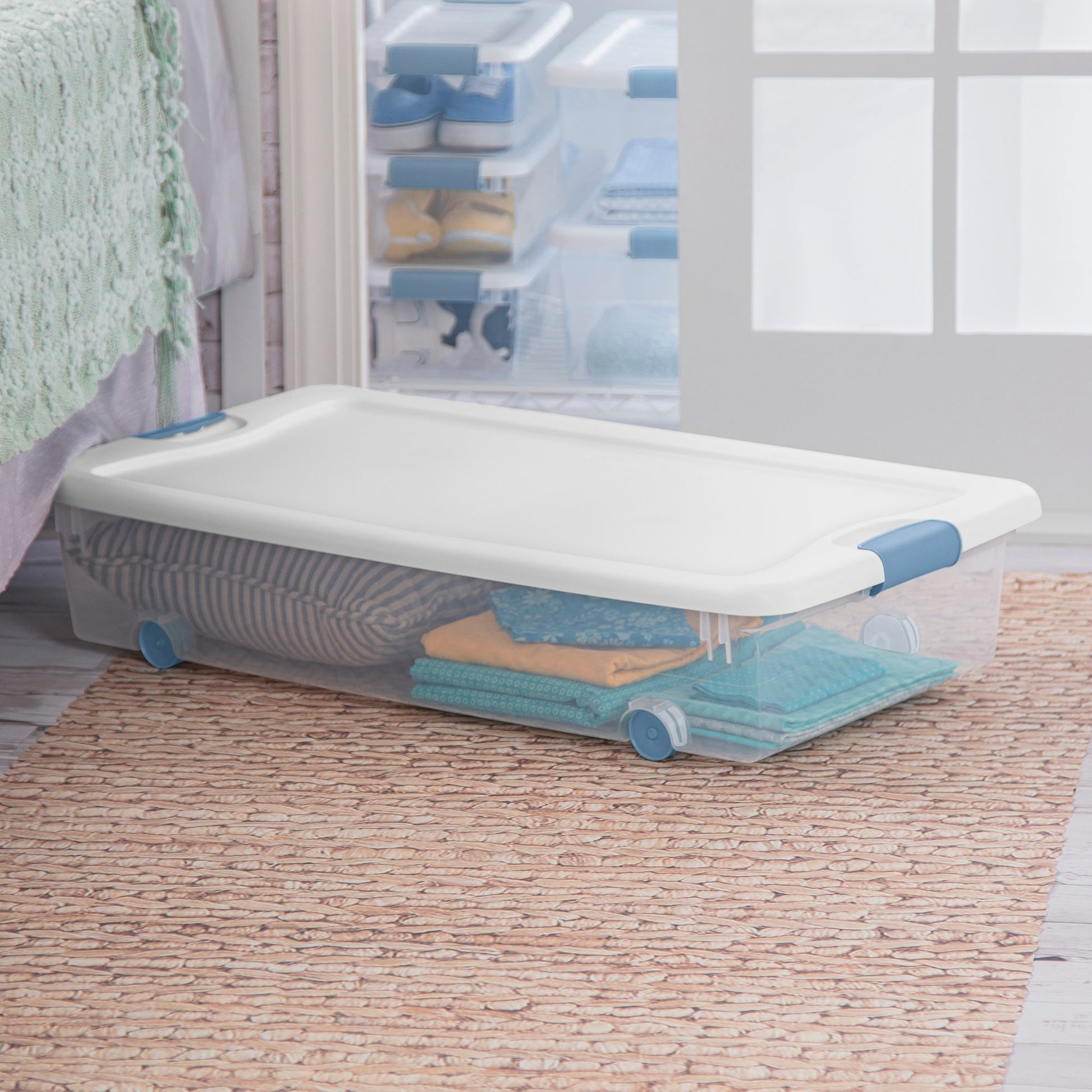 - Totes are designed for underbed storage, stacking, and organizing throughout the home