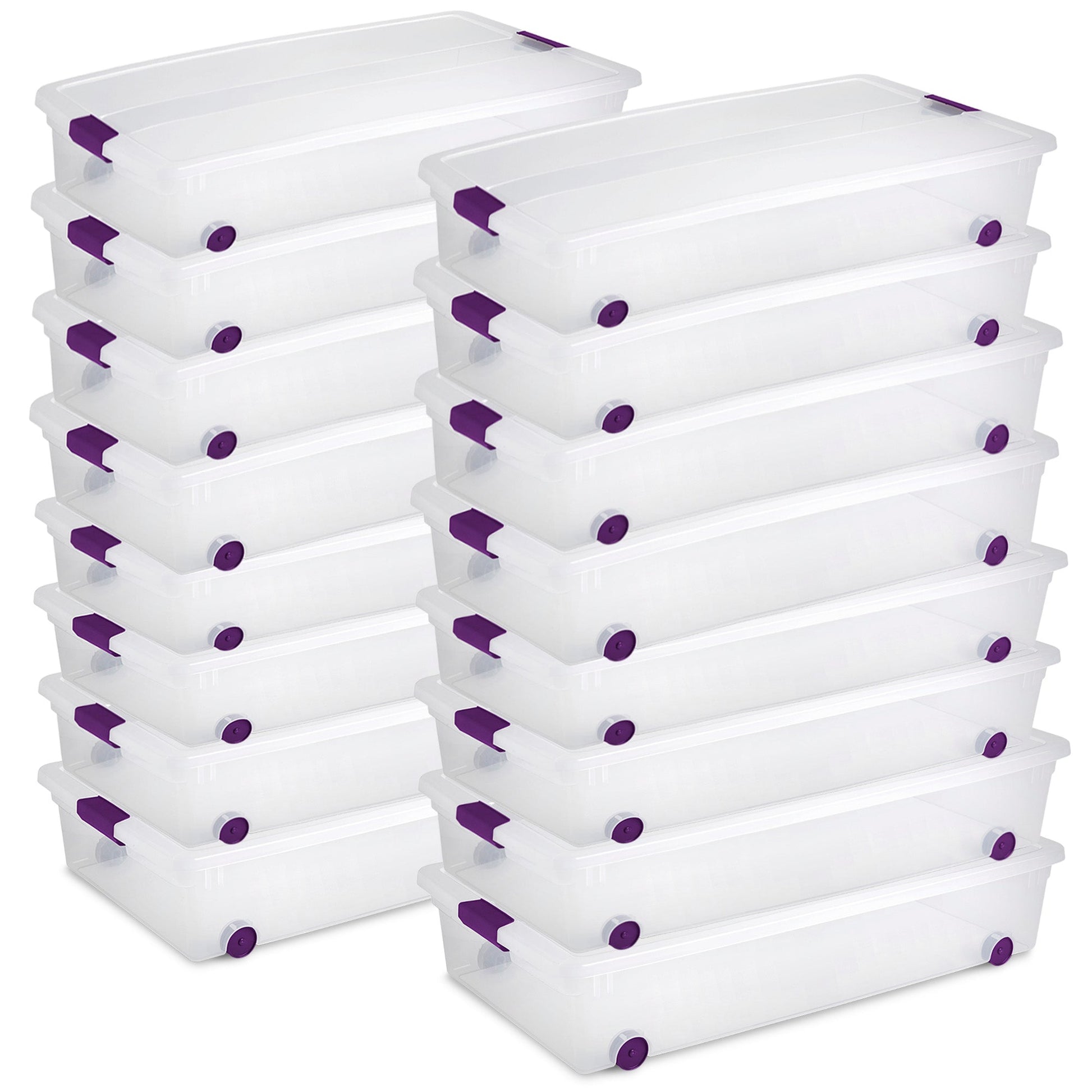 Free space can become the perfect storage space with the 16-pack of Sterilite 60-Quart ClearView Underbed Boxes.