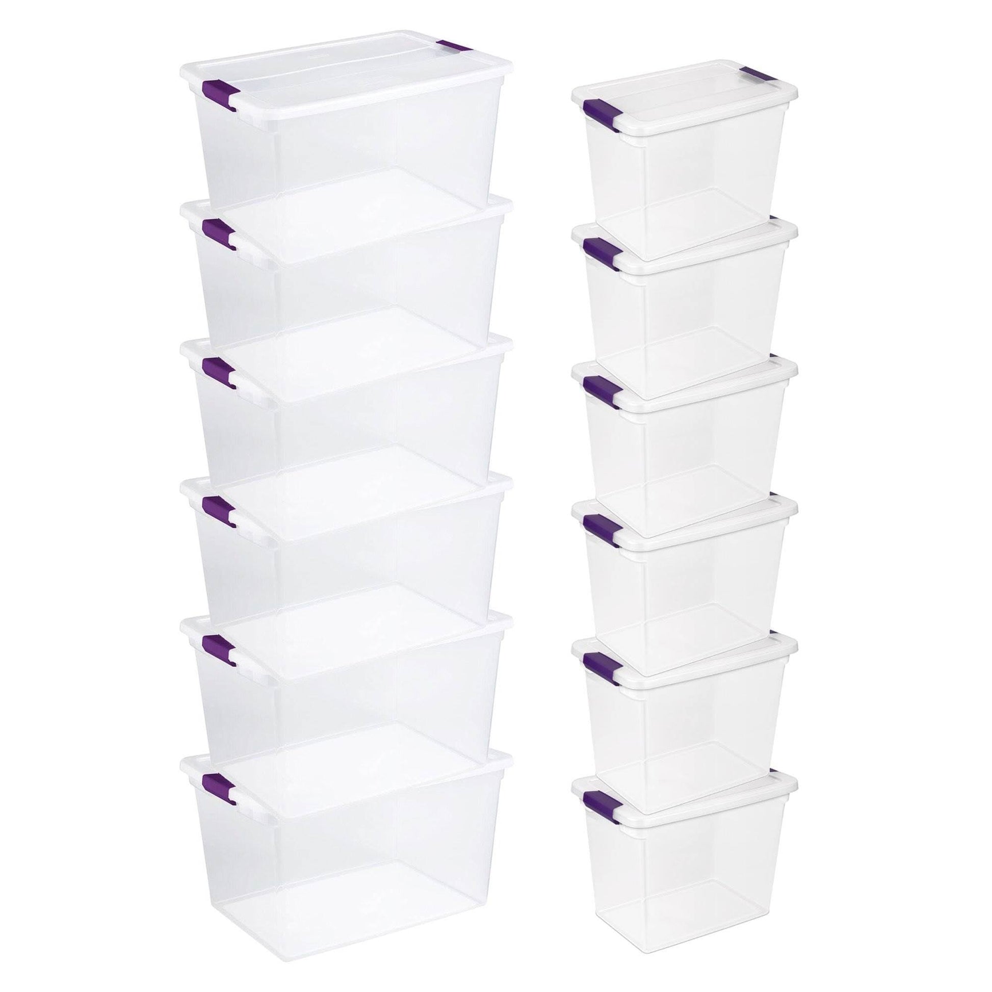Sterilite 66 Quart Latch Lid Tote, 6 Pack, and 27 Quart Latch Lid Tote, 6 Pack