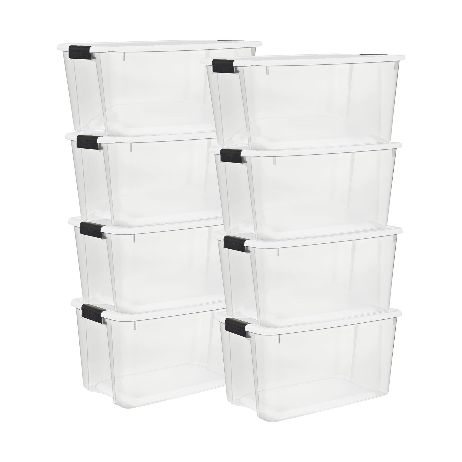 Sterilite 70 Qt Clear Plastic Stackable Storage Bin w/ White Latch Lid, (8 Pack)