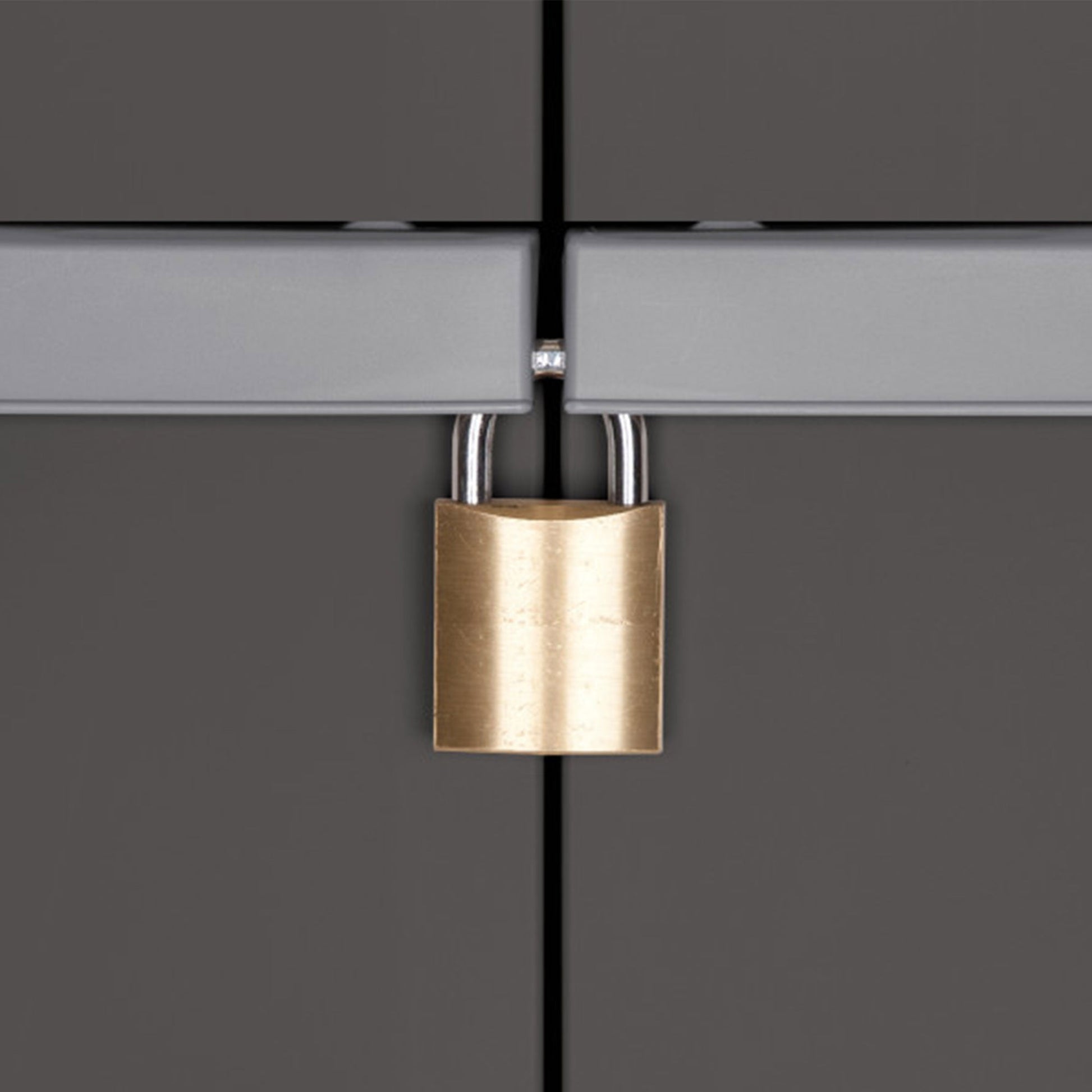Crafted from heavy-duty materials, these office supply cabinets are designed to withstand the toughest of challenges. They can endure the wear and tear of daily life, ensuring they remain a reliable storage solution for years to come. Add some stackable containers inside for seasonal storage, small drawer organizers for office supplies, or bins for toy or clothing storage. Use them for kitchen pantry foods, patio tool storage, outdoor gardening essentials, or a closet in your dorm. The cabinets are even versatile enough to use as lockers. The versatility is endless! These free standing cabinets are compatible with standard-sized padlocks, giving you the peace of mind that your important items are protected.