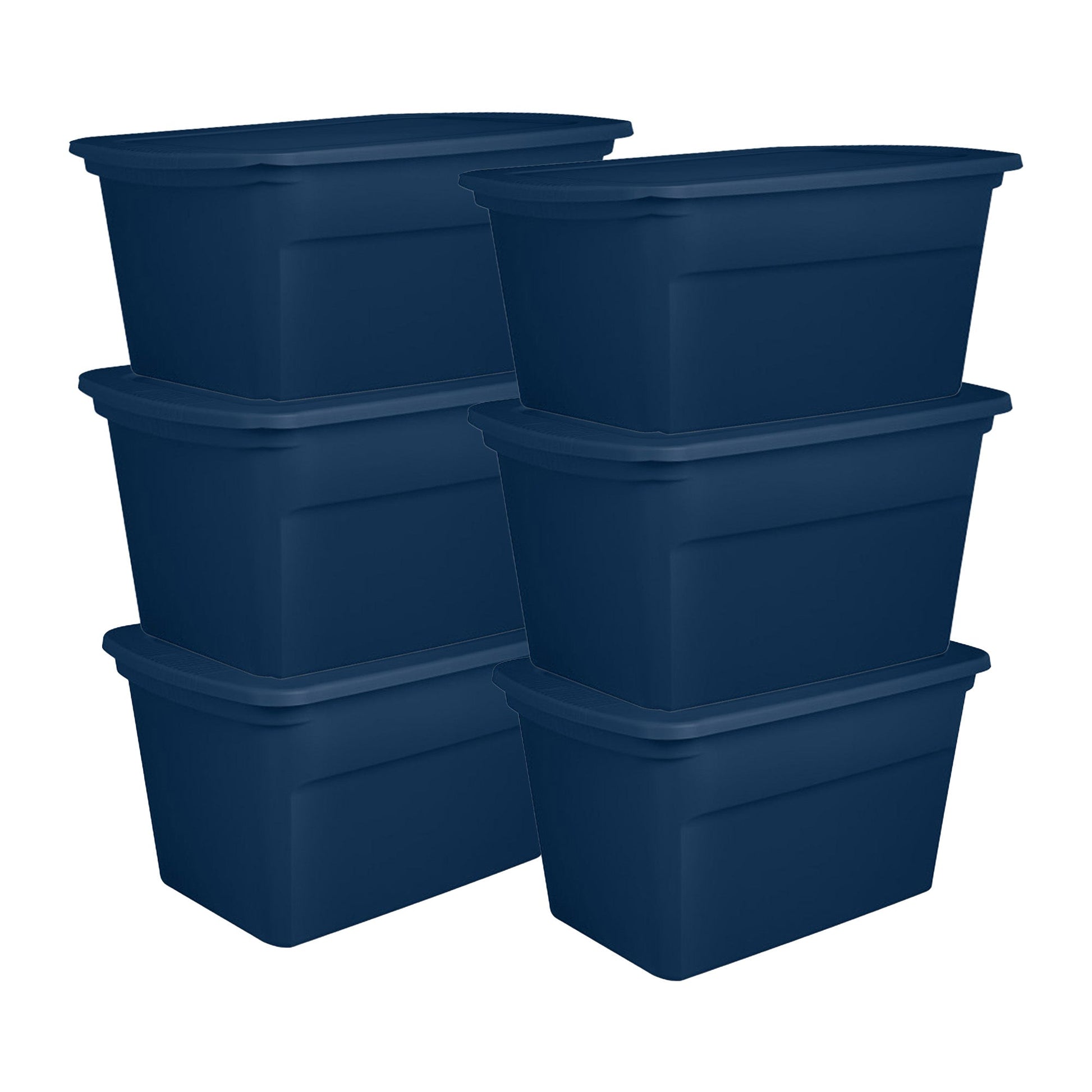 Sterilite Classic Lidded Stackable 30 Gal Storage Tote Container, Blue, 6 Pack