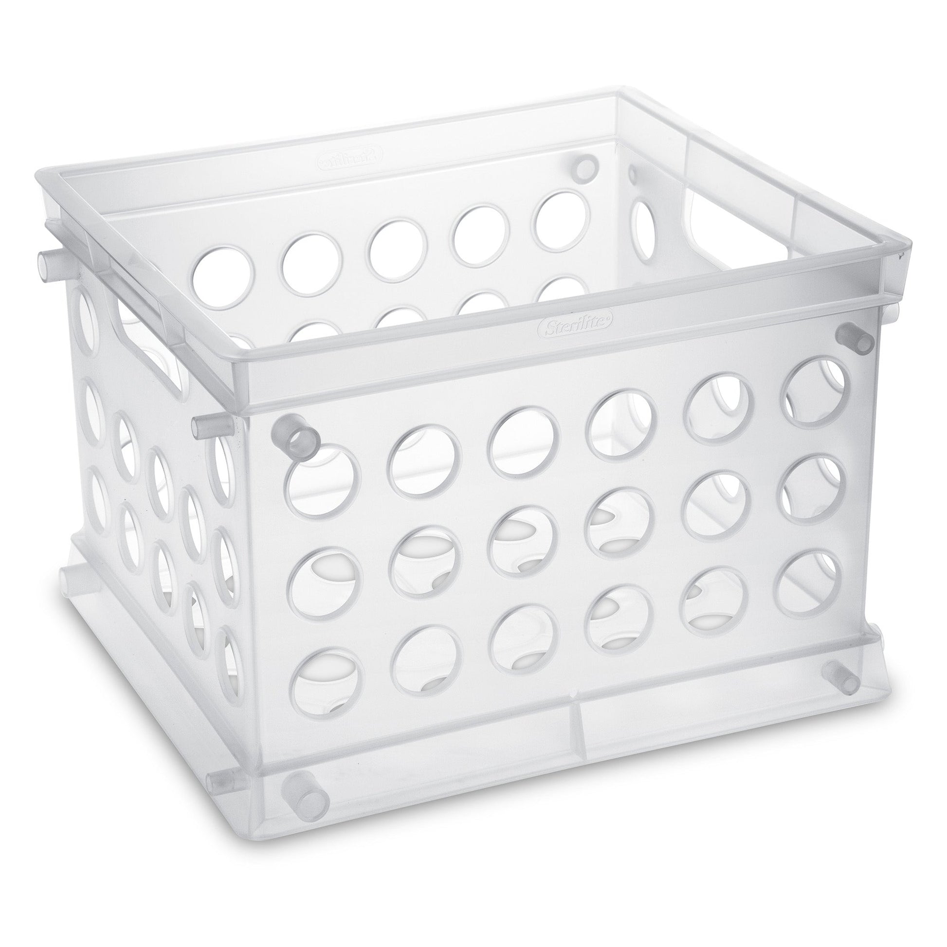 This miniature crate is ideal for use throughout the home, office, dorm or utility areas. A versatile small storage solution offers endless ideal uses in 9-inches in length, 7.87-inches in width, and 6.12-inches in height. Keep hair accessories and makeup under control in bedrooms, and health and beauty products in bathrooms, and more. The mini storage crate is great for sorting and displaying CDs and DVDs, in entertainments areas. Multiple organizing crates can stack on top of each other for efficient used of space or stack on the side to create a bookcase-type of storage system. Integrated handles allow for easy carrying for on the go storage needs.