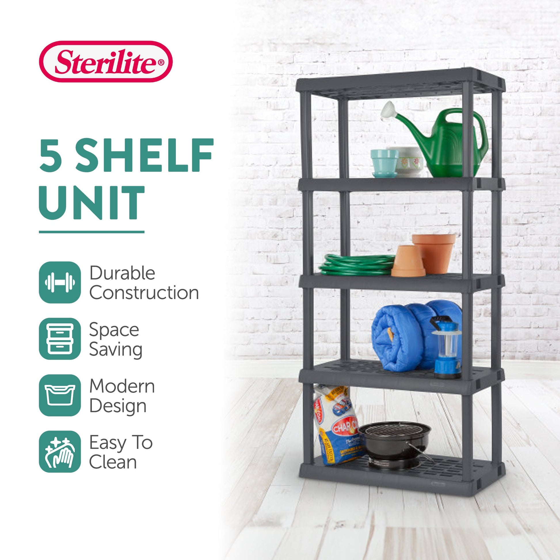 Organize and declutter your life with the 5-Shelf Shelving Unit organizers from Sterilite.