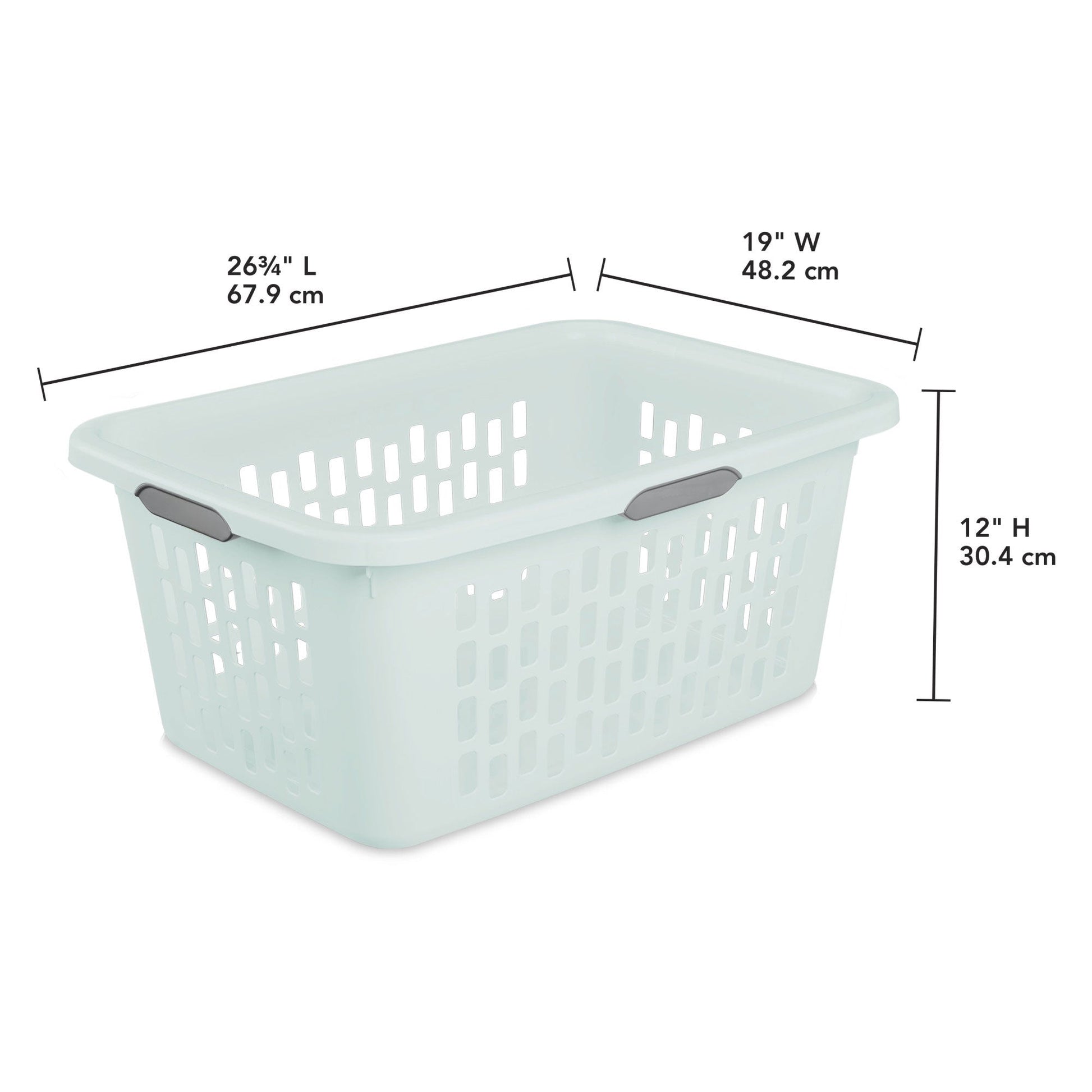 - Laundry basket has outside dimensions of 26 3/4"L x 19"H x 12"W, ideal to carry large loads of laundry