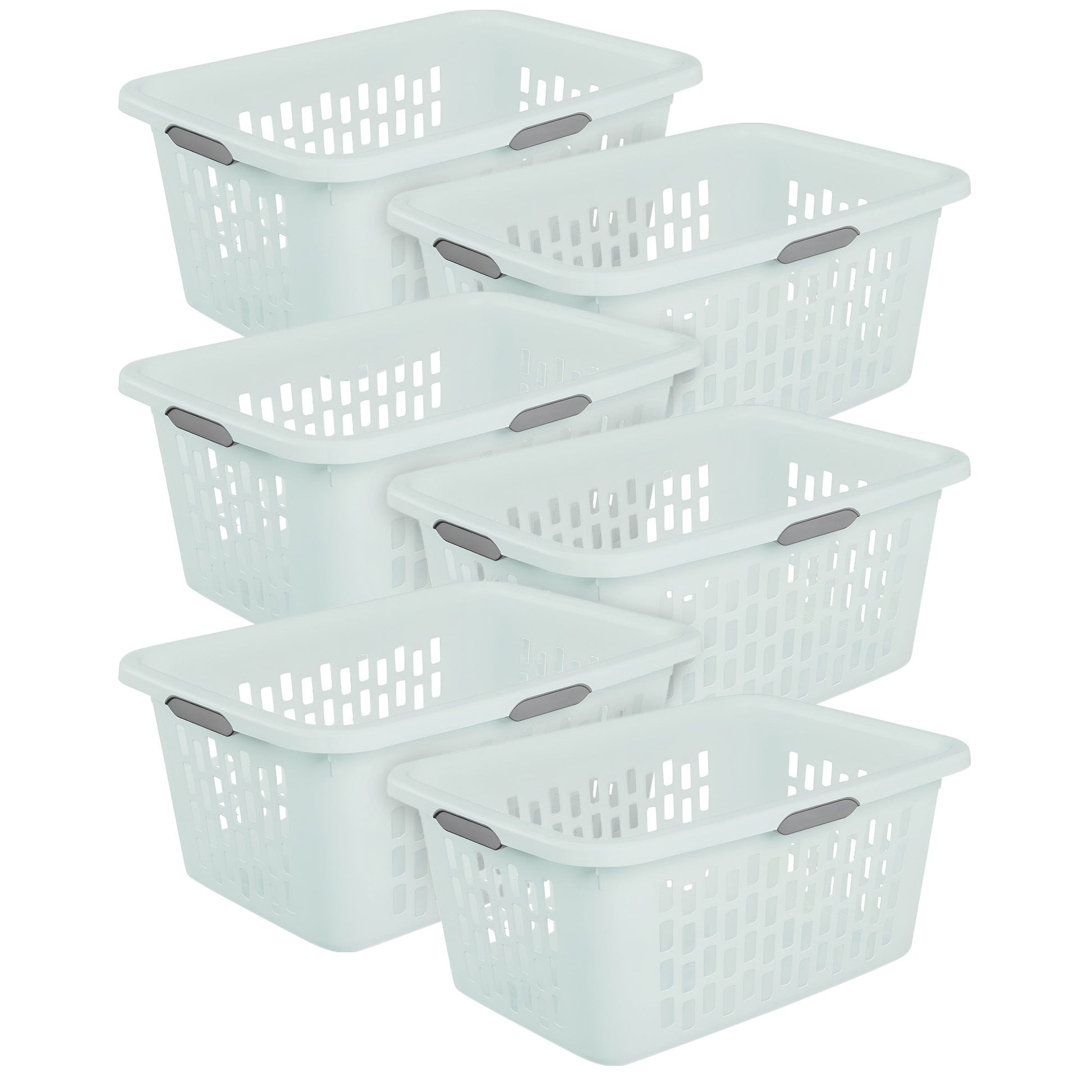 Sterilite Laundry Basket, 2 Bushel Plastic Hamper with Handles, Mint, 6 Pack