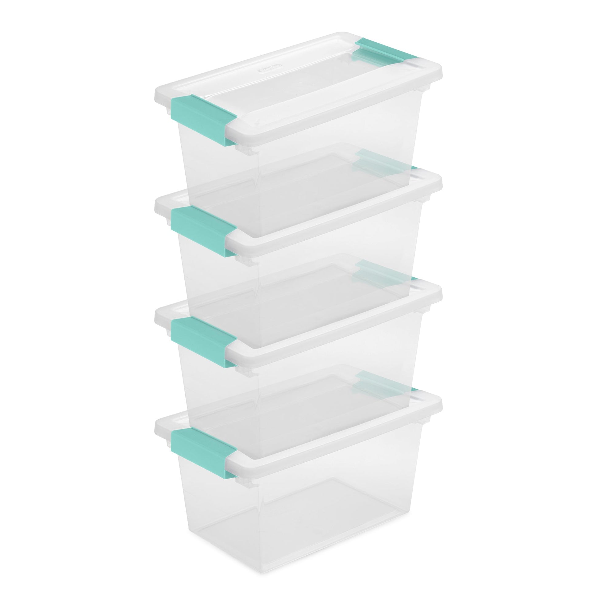 De-clutter your space and create your ideal storage system with the 4-pack of Plastic Medium Clip Storage Box Container with Latching Lid from Sterilite.