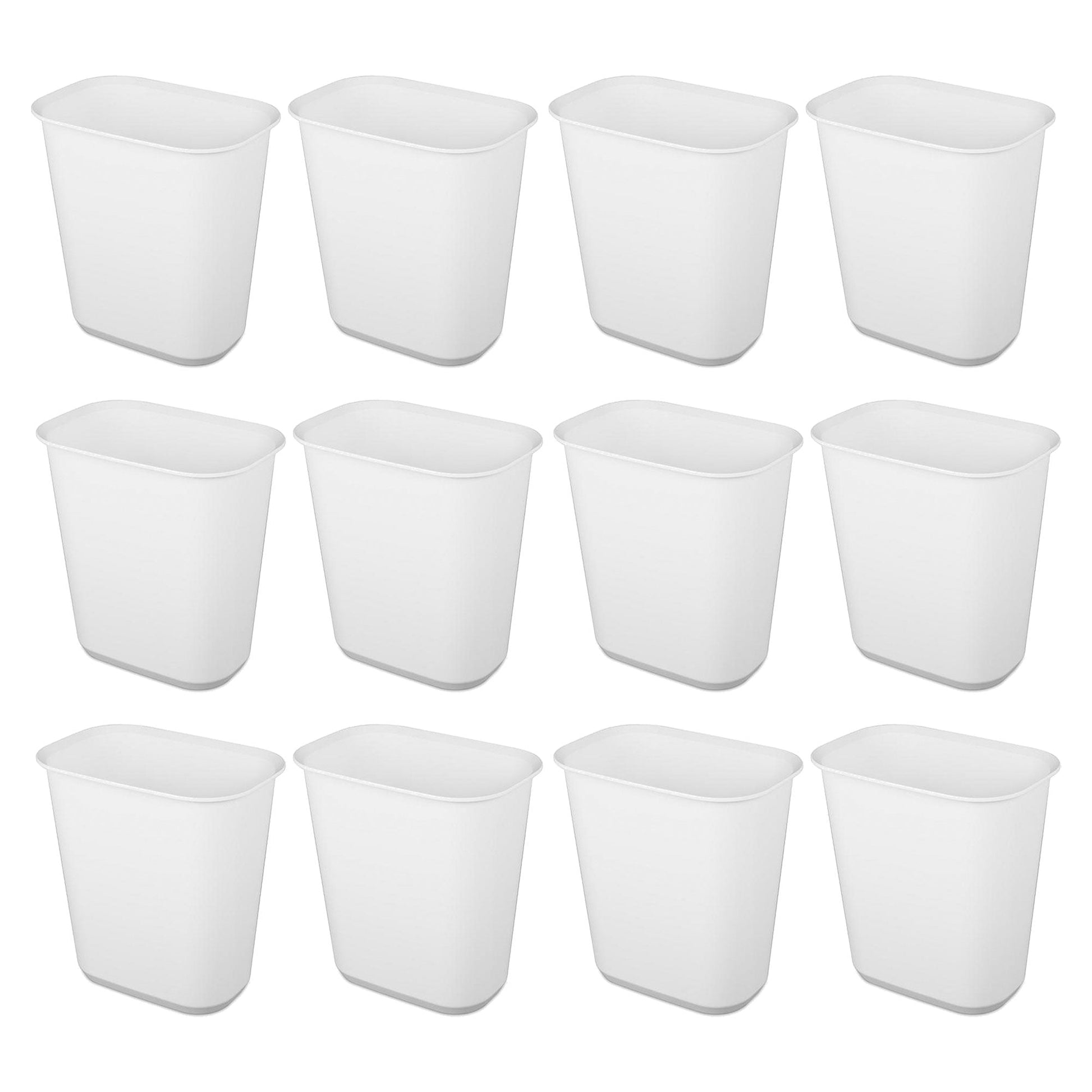 Sterilite Rectangular Wastebasket 5.5 Gallon Open Top Trash Bin, 12 Pack, White