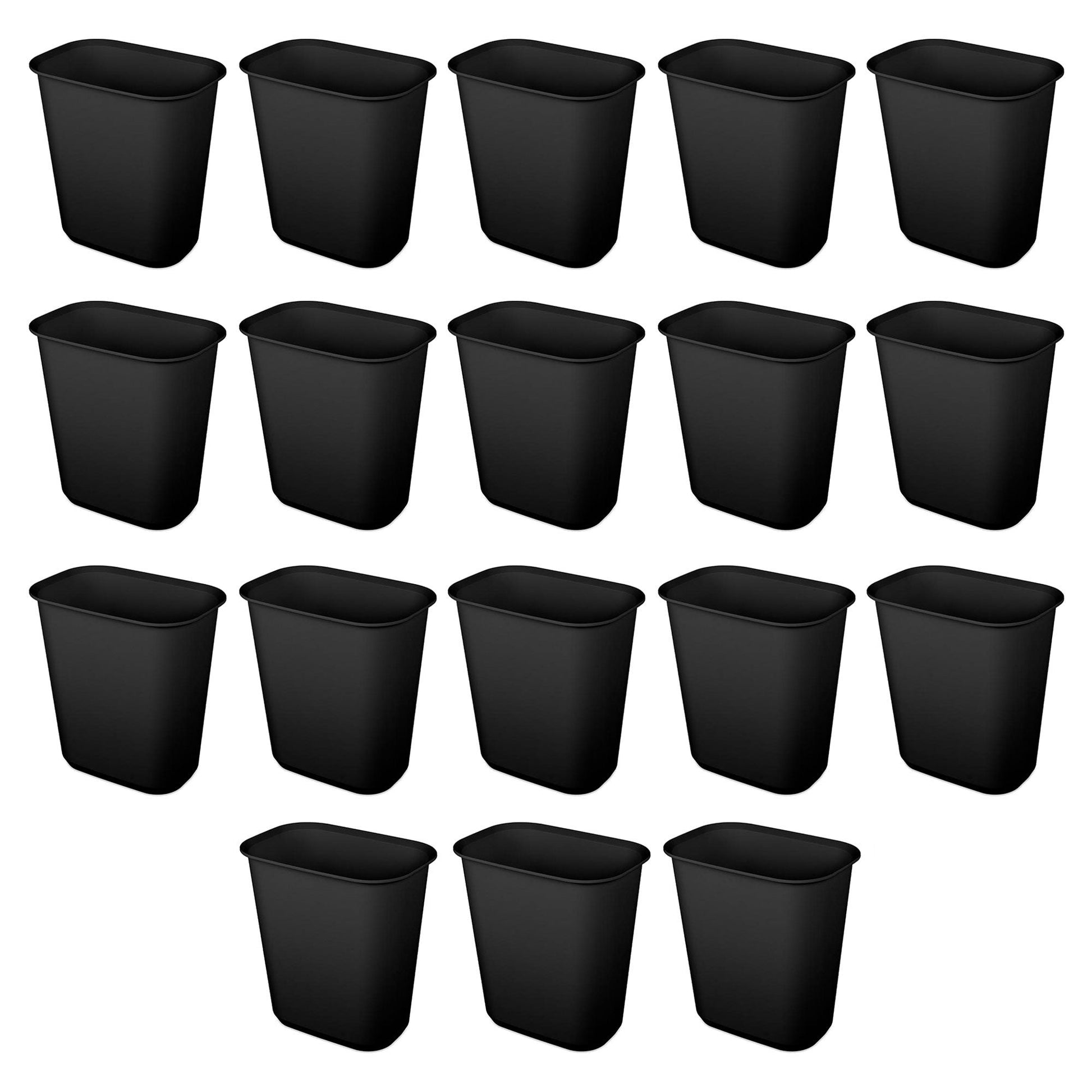 Sterilite Rectangular Wastebasket 5.5 Gallon Open Top Trash Bin, 18 Pack, Black