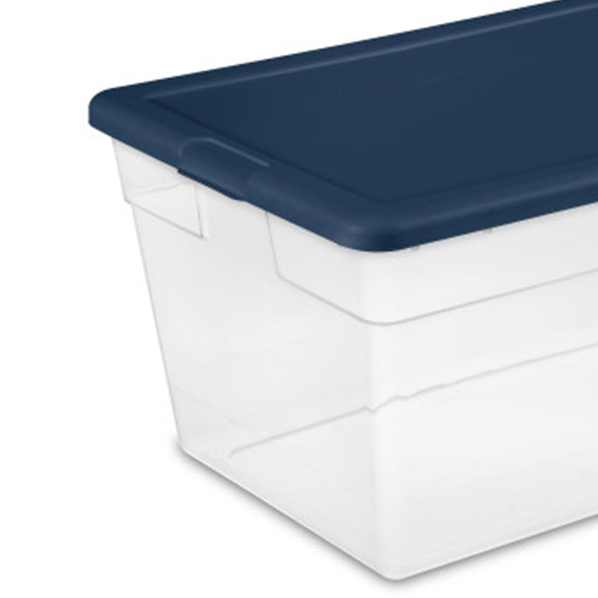 Sterilite Stackable 56 Quart Storage Tote, Clear with Marine Blue Lid (16 Pack)