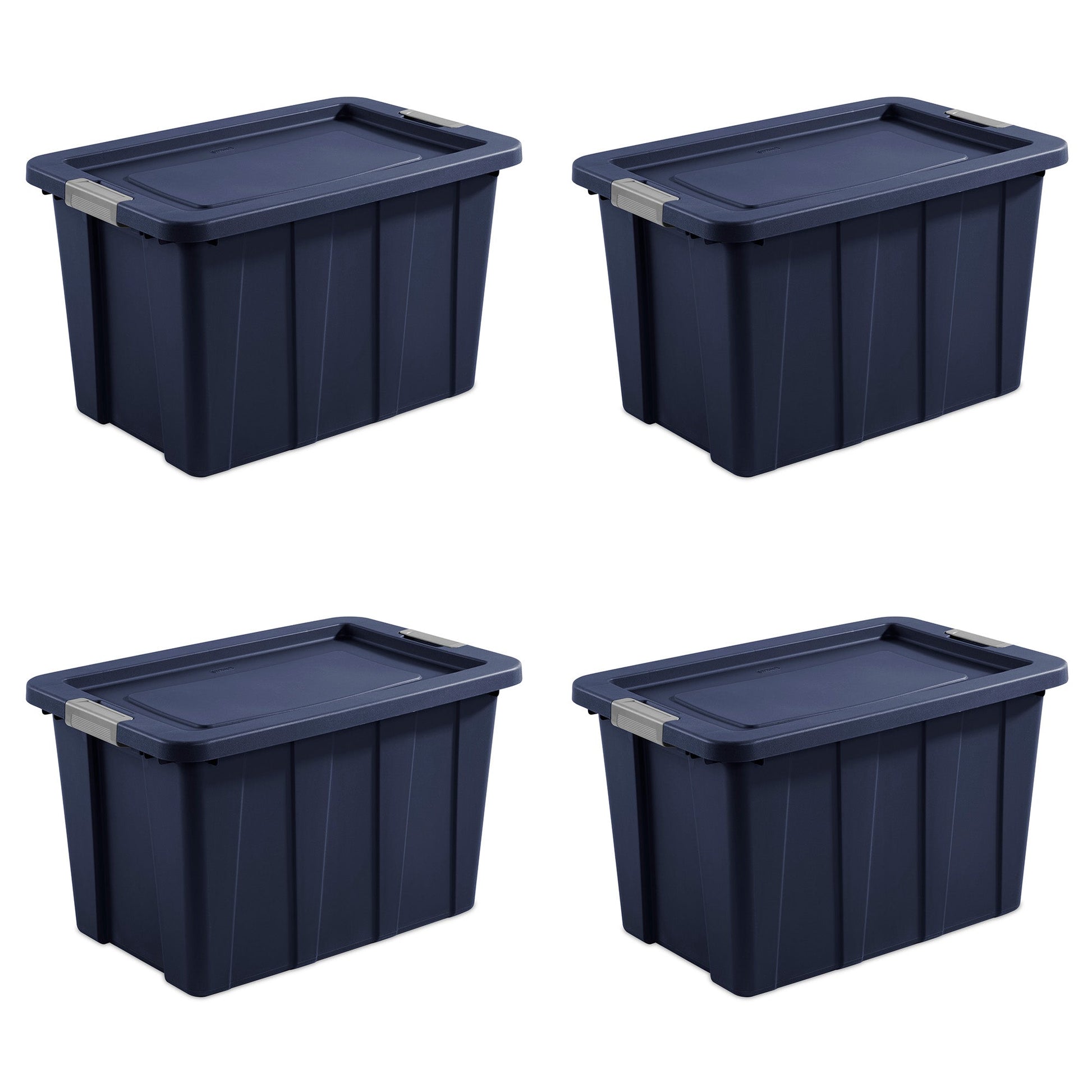 Sterilite Tuff1 30 Gallon Plastic Storage Tote Bin w/Latching Lid, Blue (4 Pack)