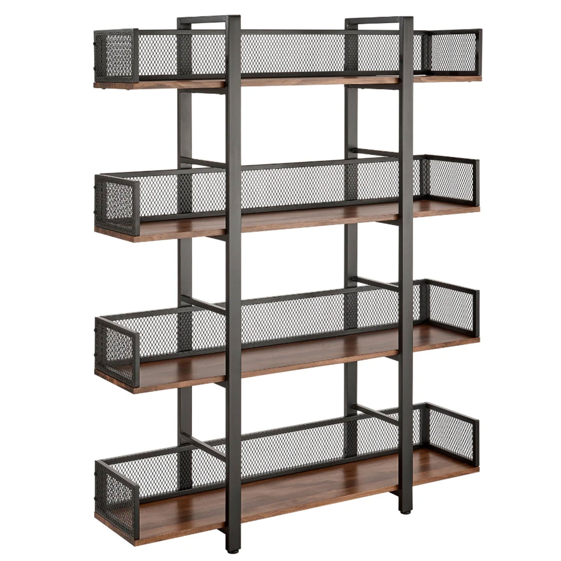 Upgrade the looks of your space with this 4-Tier Solid Wood Metal Industrial Bookshelf from Sturdis.
