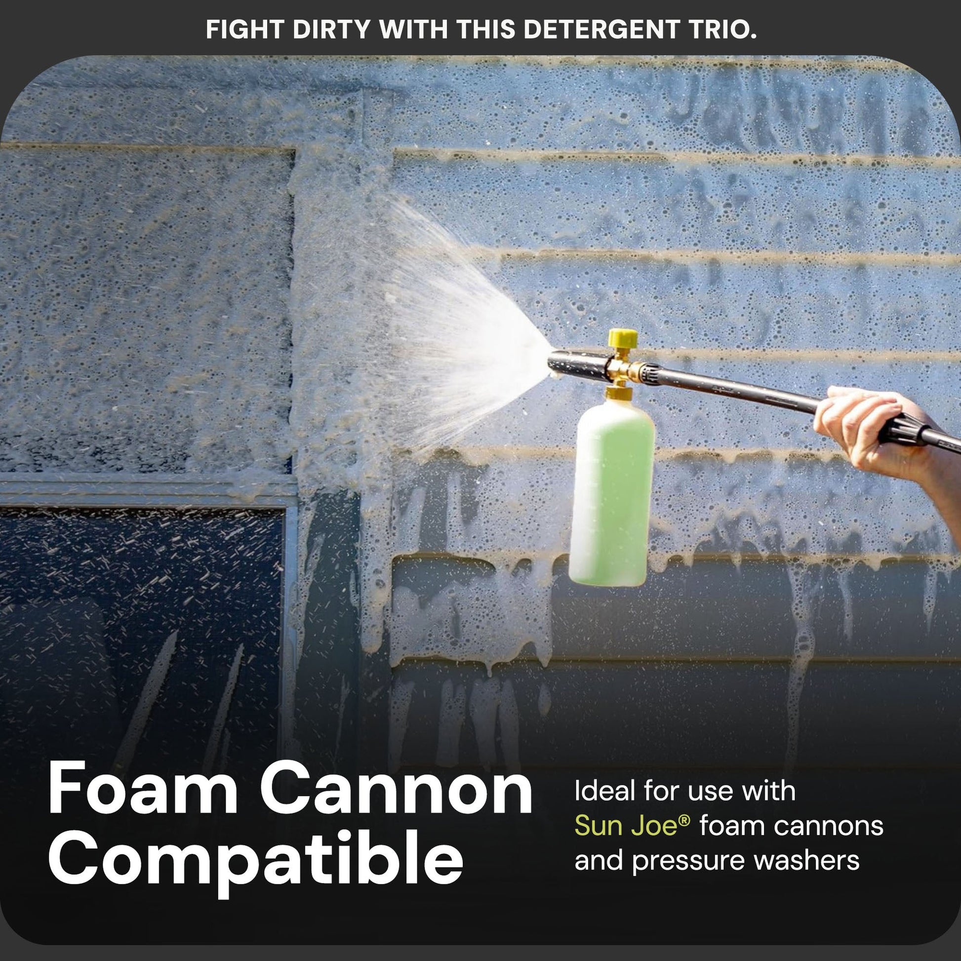 Compatible with all Sun Joe pressure washers and most other pressure washer brands, this trio delivers a deep clean for your toughest jobs. Just pour the concentrate into your pressure washer’s detergent tank or apply it with a foam cannon for maximum effectiveness. Experience professional-grade cleaning results while saving time and effort—choose Sun Joe Pressure Washer Concentrate Trio for a sparkling clean home and vehicle!