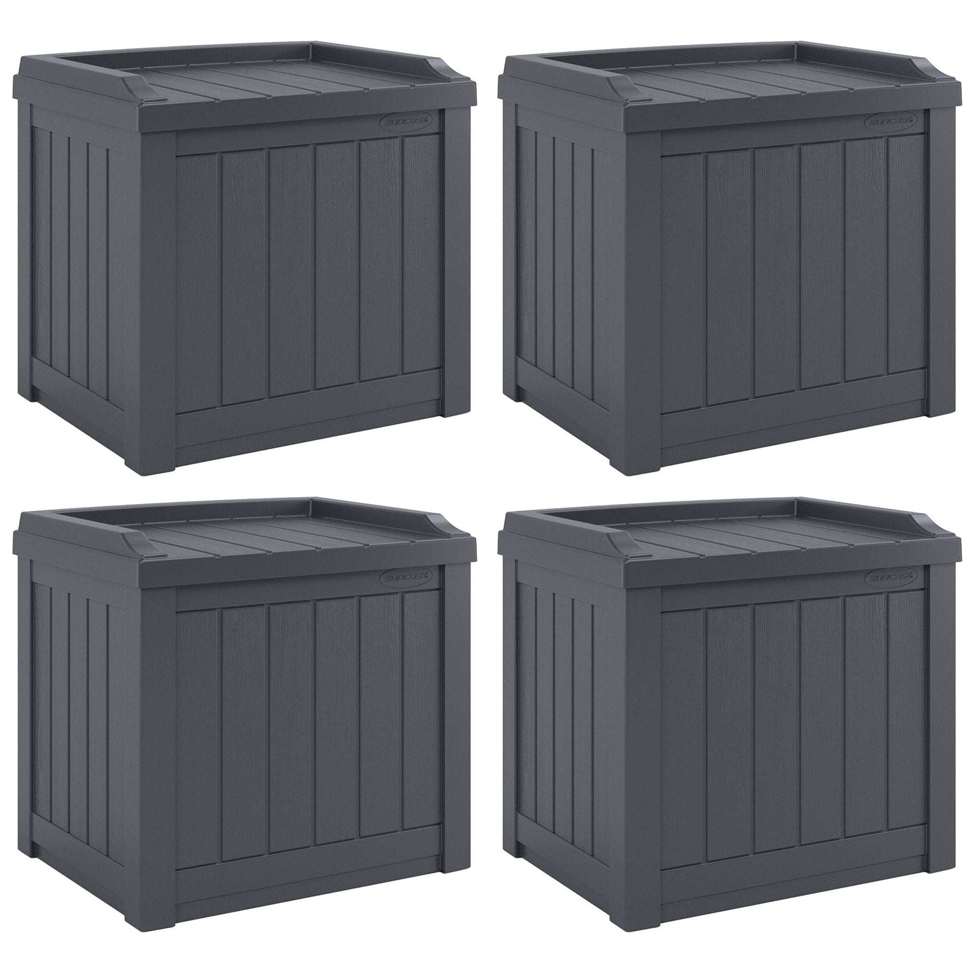 Suncast 22 Gal Outdoor Patio Small Deck Box w/Storage Seat, Cyberspace (4 Pack)