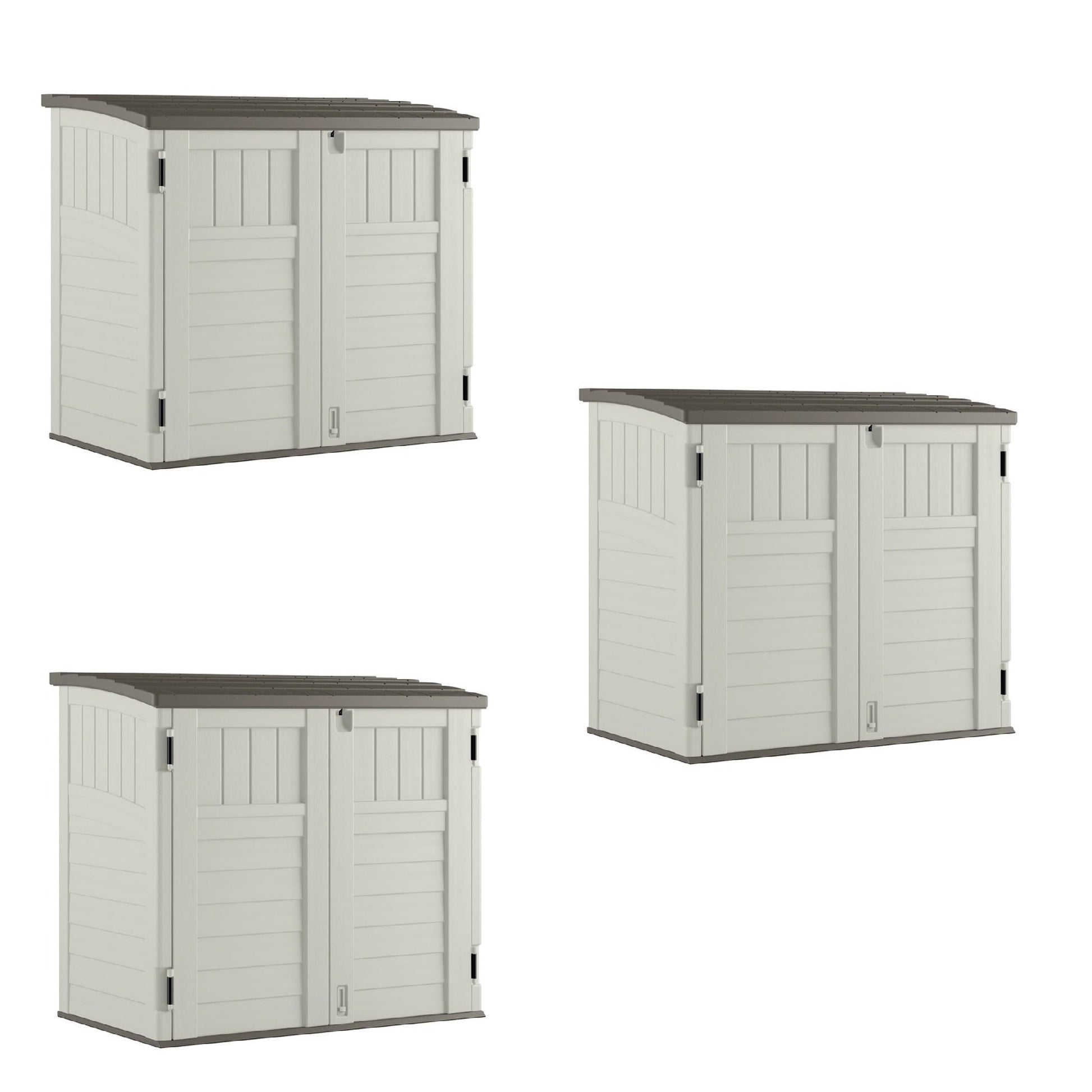 Suncast 3 Door Locking System Horizontal Storage Shed Stow Away, Ivory (3 Pack)