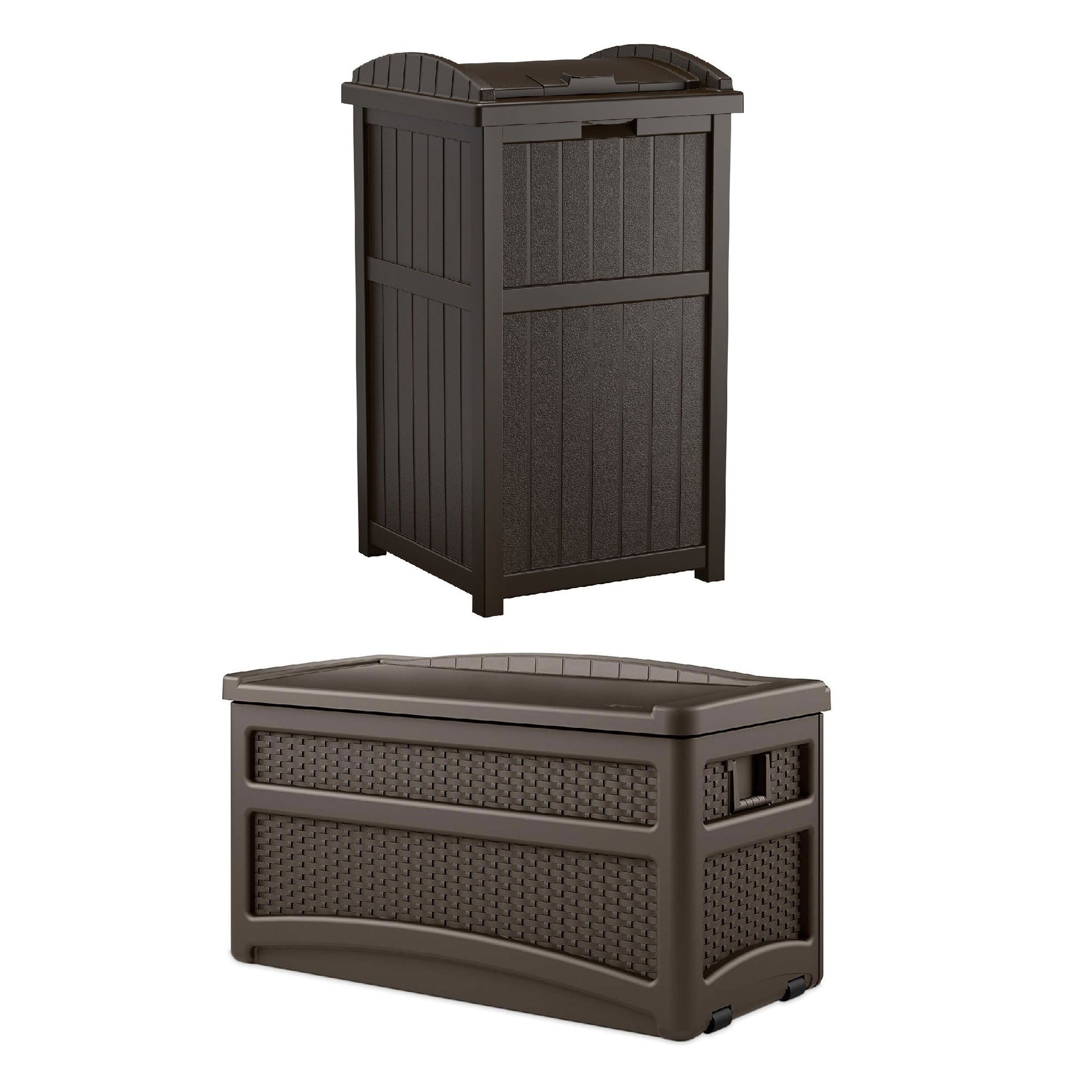 Store your outdoor essentials and provide a sleek, concealed trash receptacle to maintain a beautiful appearance around your home with the Suncast Deck Box and Hideaway Bin.
