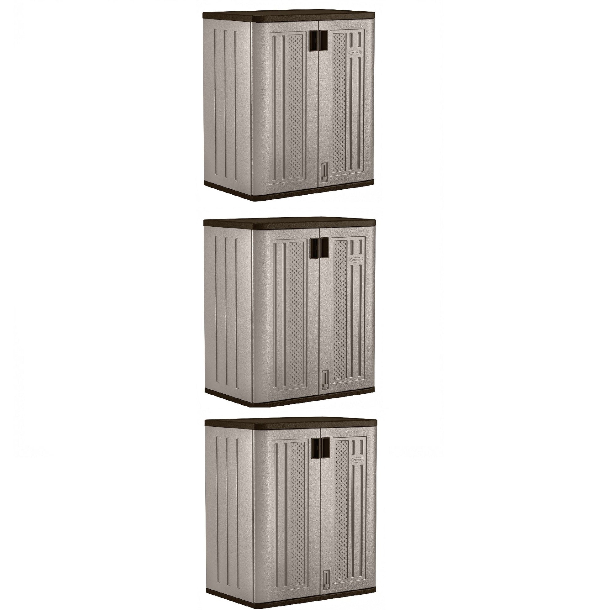 Suncast 9 Cu Ft Heavy Duty Resin Garage Base Storage Cabinet, Platinum (3 Pack)