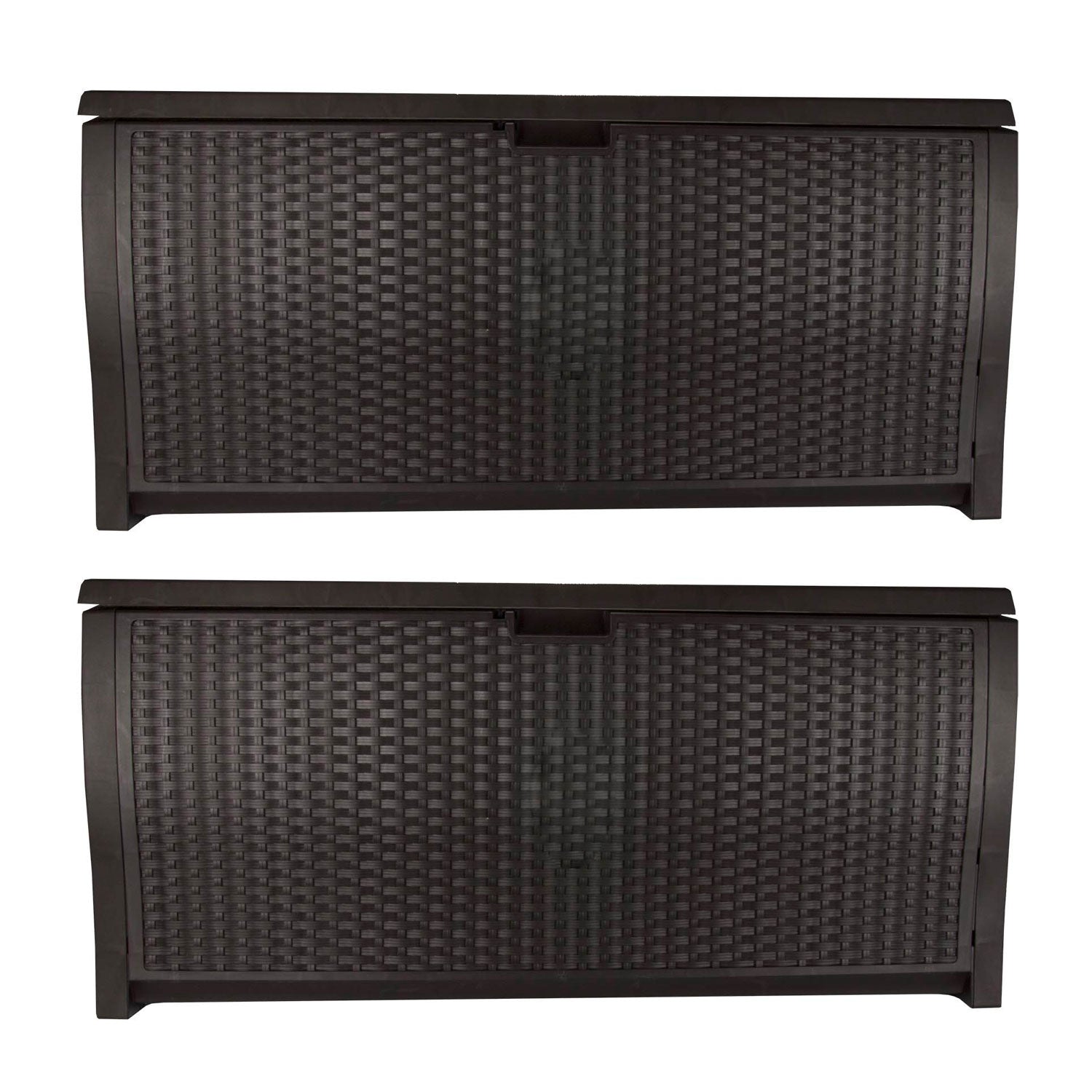 Suncast 99 Gallon Deck Garden Garage Home Wicker Resin Pool Box, Mocha (2 Pack)