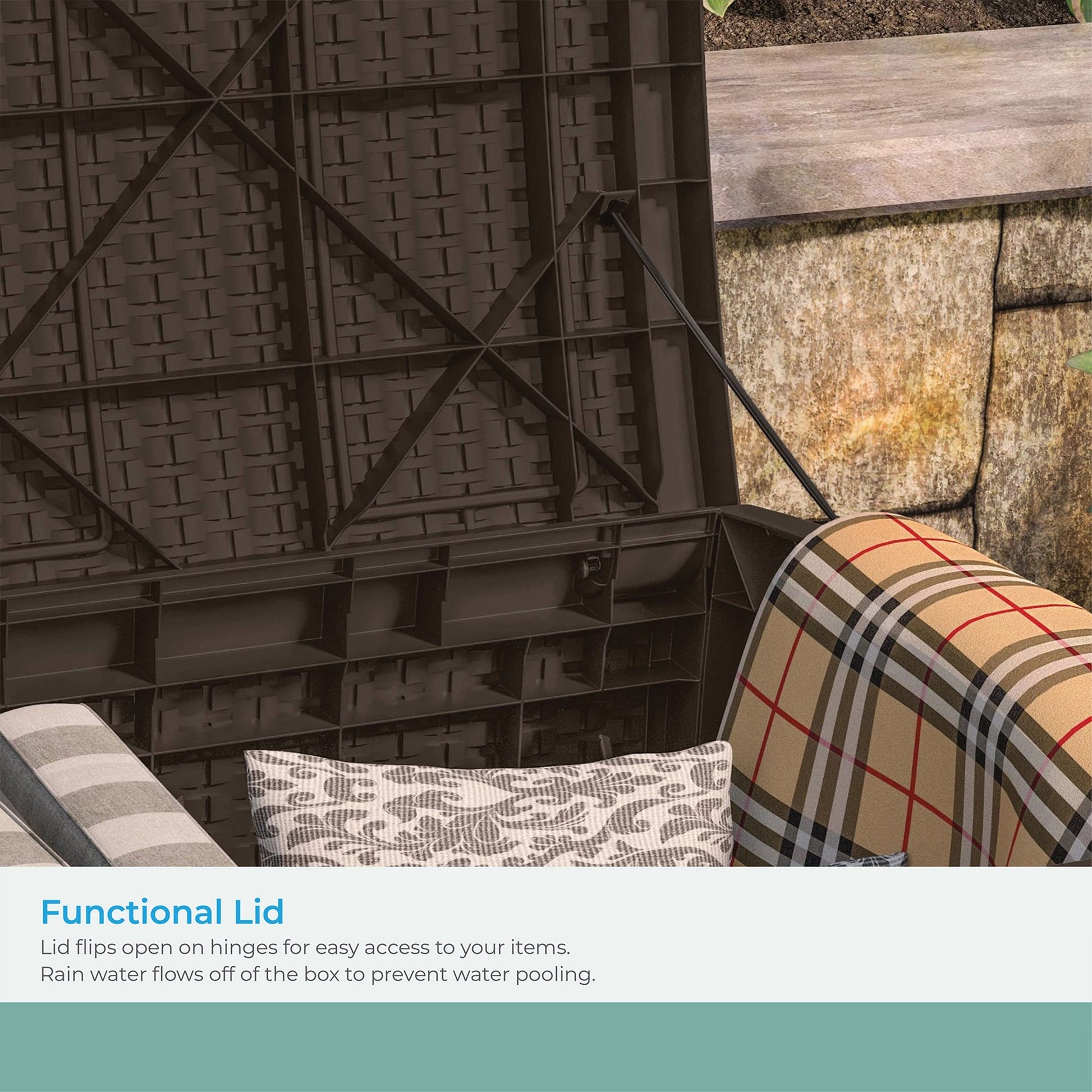Thanks to the built-in handles, you can easily move this box to wherever you need extra storage. The mocha brown colored exterior makes it easy for this box to fit into your existing outdoor decor.