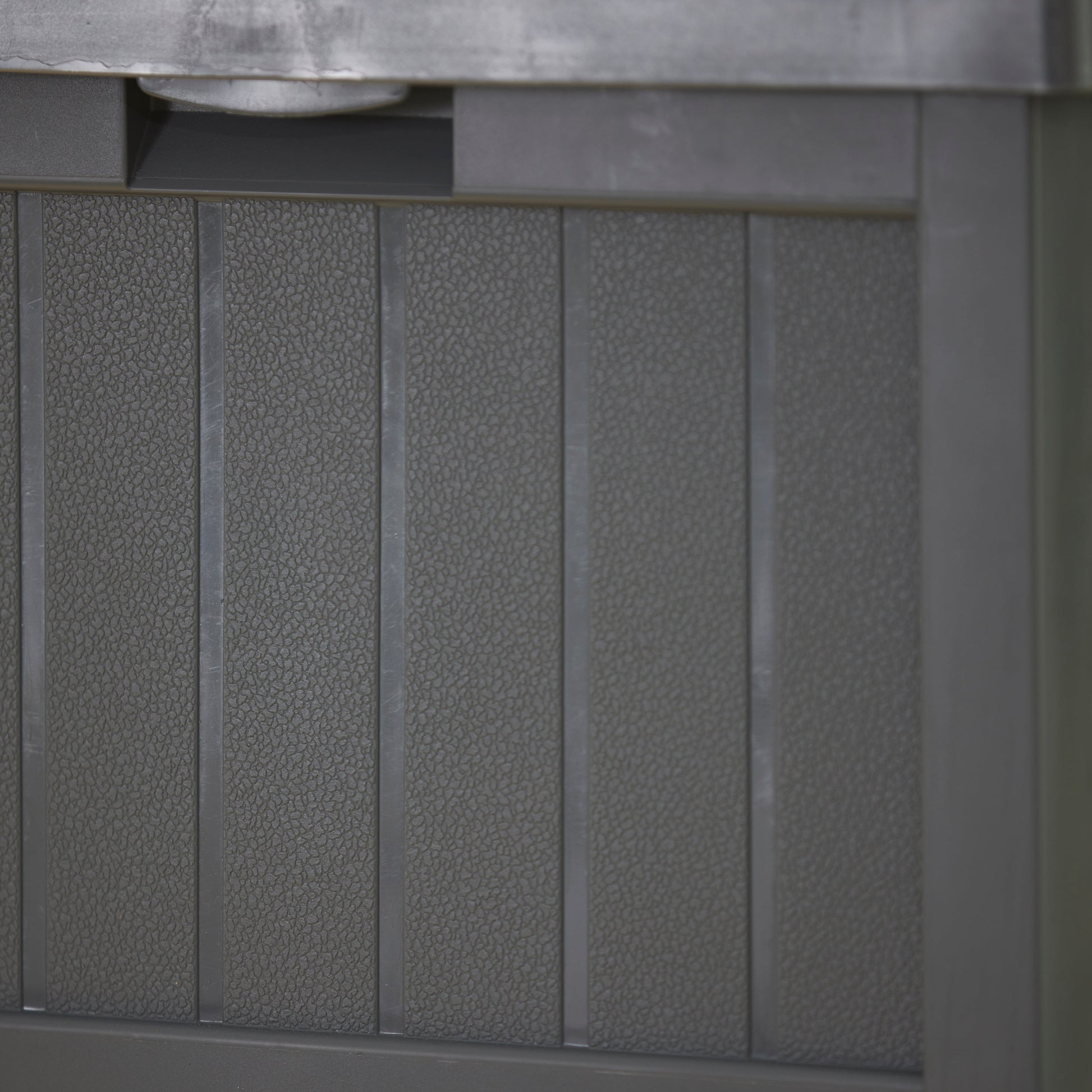 Made of long-lasting, durable resin materials, this outdoor garbage can is made to withstand unexpected weather conditions and stays dry through the rainy season. Featuring a solid bottom panel, this bin will stay securely weighted down and prevents leakage. You can easily assemble this trash can without needing tools. With a stylish, wainscoting design, this hideaway trash can match most outdoor furniture and other decors.