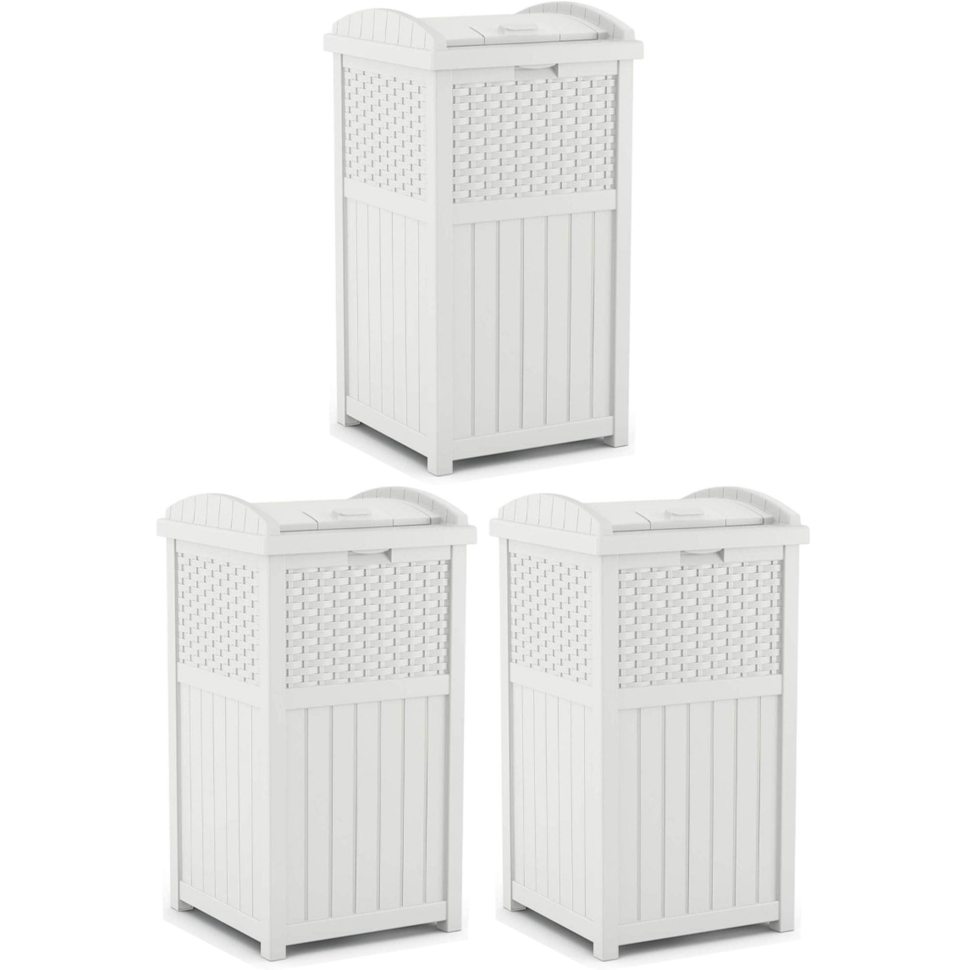 Suncast Trash Can Hideaway Outdoor 33 Gallon Garbage Waste Bin, White (3 Pack)