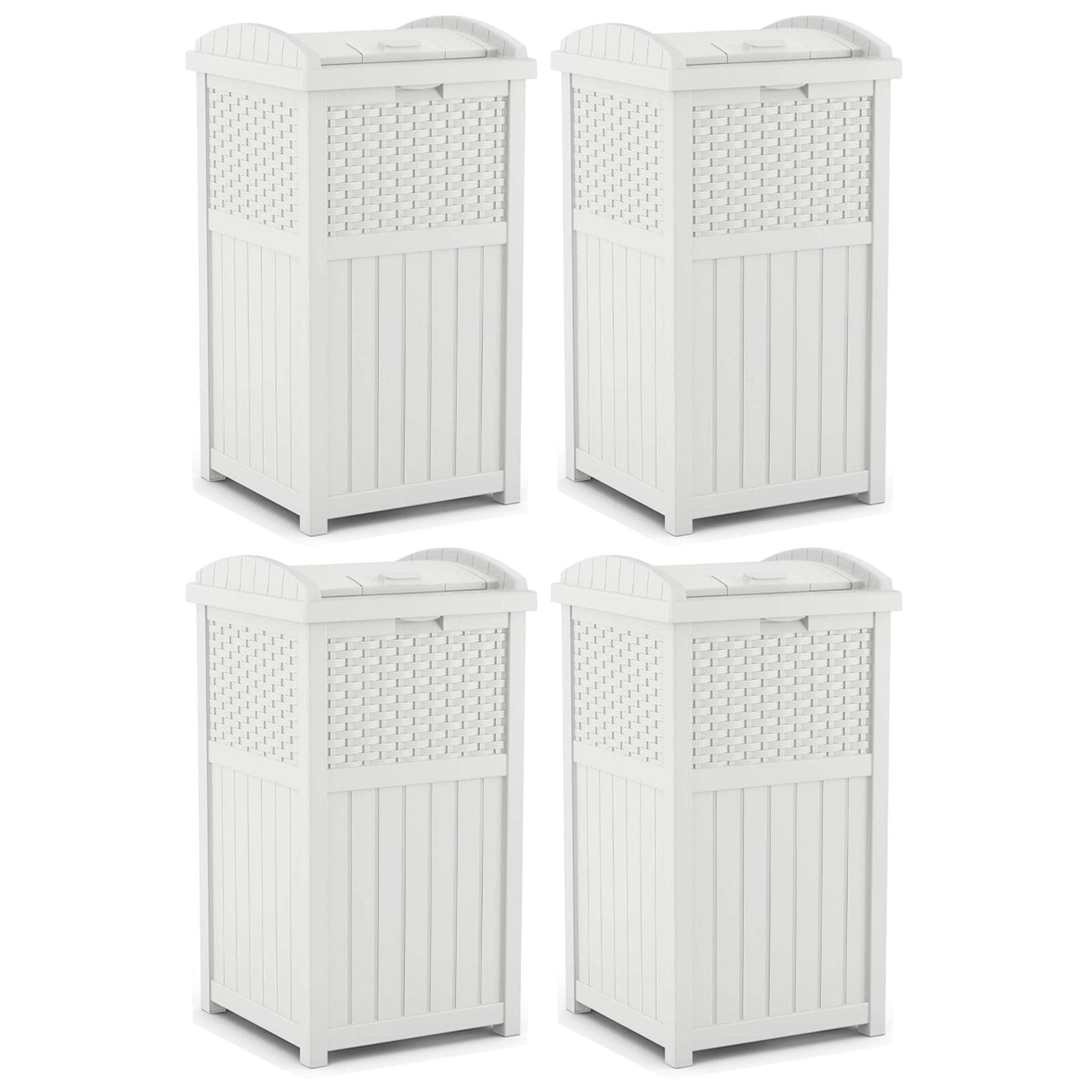 Suncast Trash Can Hideaway Outdoor 33 Gallon Garbage Waste Bin, White (4 Pack)