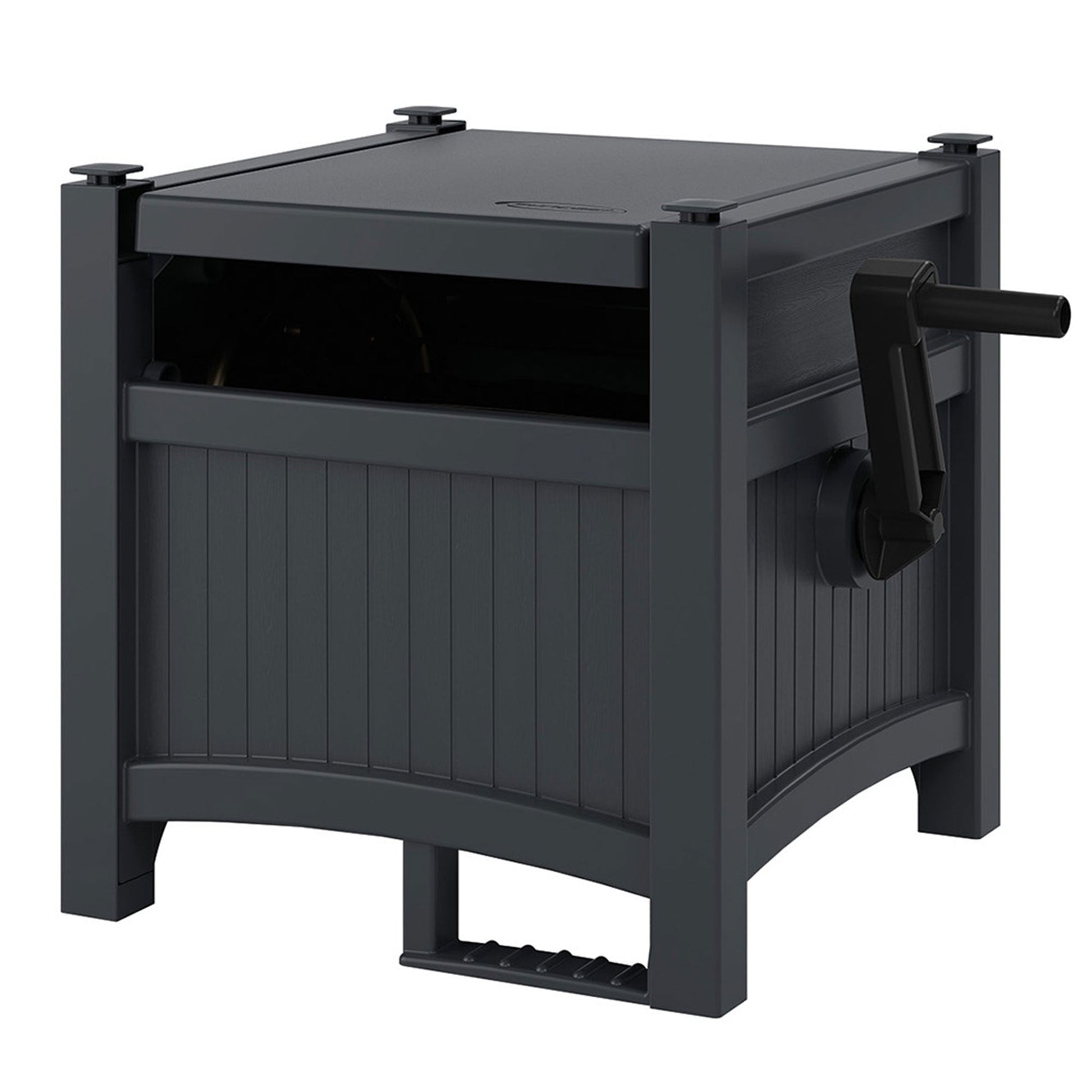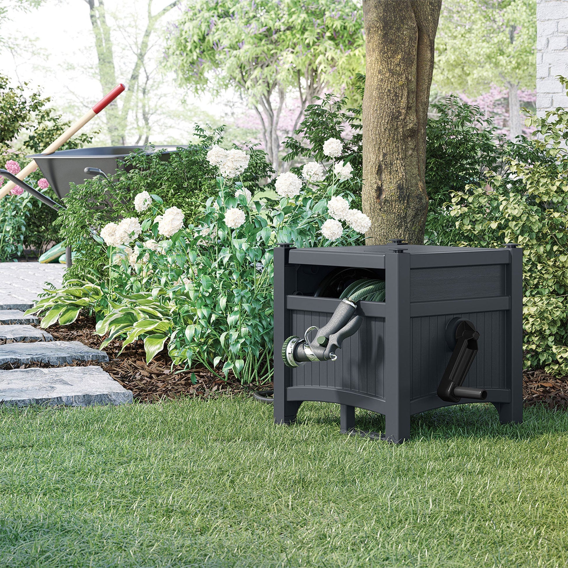 Spruce up your outdoor space, patio, or garden and conceal the garden hose with the Suncast CPLPHH100D Hideaway 100' Resin Garden Hose Reel.