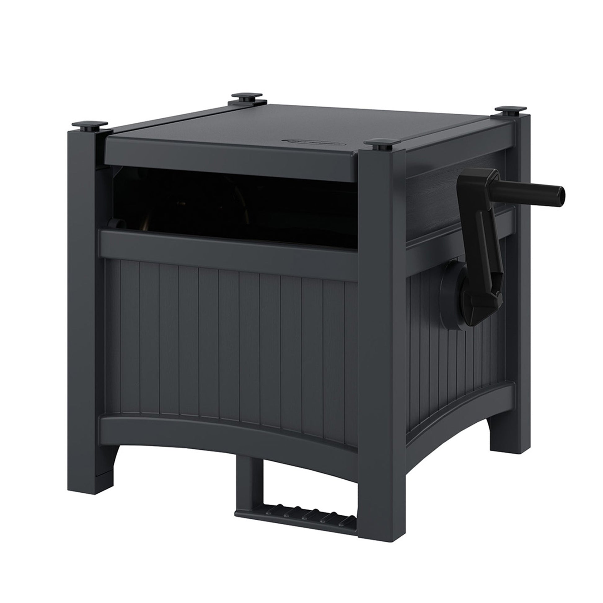 Convenient and mobile, these hose reels look as pretty as your plants when it's posted up next to your lawn and garden and provide a kink-free solution for easy access. The patented Easylink system makes sure a watertight connection is between the hose reel and hose, with a strong and reinforced system. Equipped with a stabilizing footrest and crank handle to help keep winding and unwinding easy and organized, these sturdy plastic constructions ensure your 100-foot vinyl hoses are wound up securely and keep your outdoor space decluttered while weathering the outdoor elements. These garden hose reels come fully assembled so you can get to watering your garden, filling up that pool, or washing your car right away.