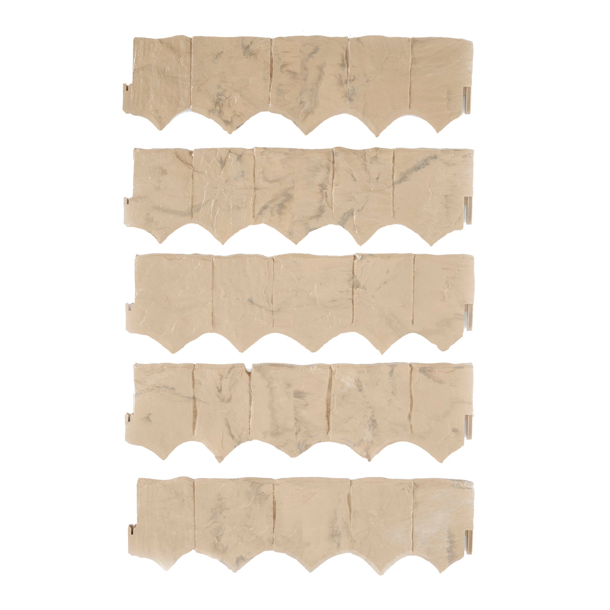 Consisting of (10) 22-inch stone strips, these barriers are ideal for outlining your patio, walkway, garden, and other landscaping areas for a more sophisticated look. Designed to act as a weed barrier, these borders will keep mulch, dirt, and other compositions securely in the bed. With different ways for connections, these liners create a variety of different looks to fit the look you're trying to create. Since diffing isn't required to install these lawn edging borders, you'll be able to simply put them wherever you want within minutes. Measuring 22 inches wide, 6.5 inches tall, and 0.5 inches deep with an in-ground height of 4.5 inches, these outdoor borders are made of strong, flexible materials to ensure long-lasting use season after season.