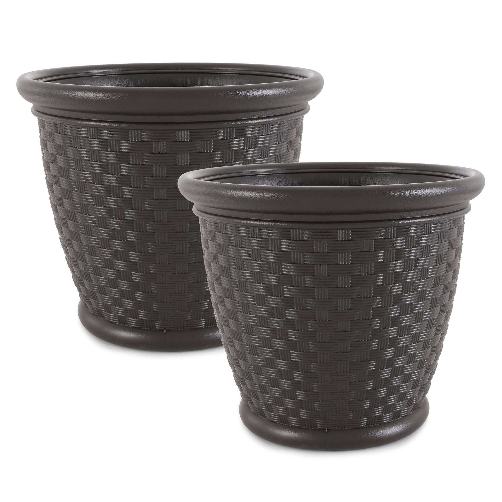 Suncast Sonora 18 Inch Resin Wicker Decorative Flower Planter, Brown (2 Pack)