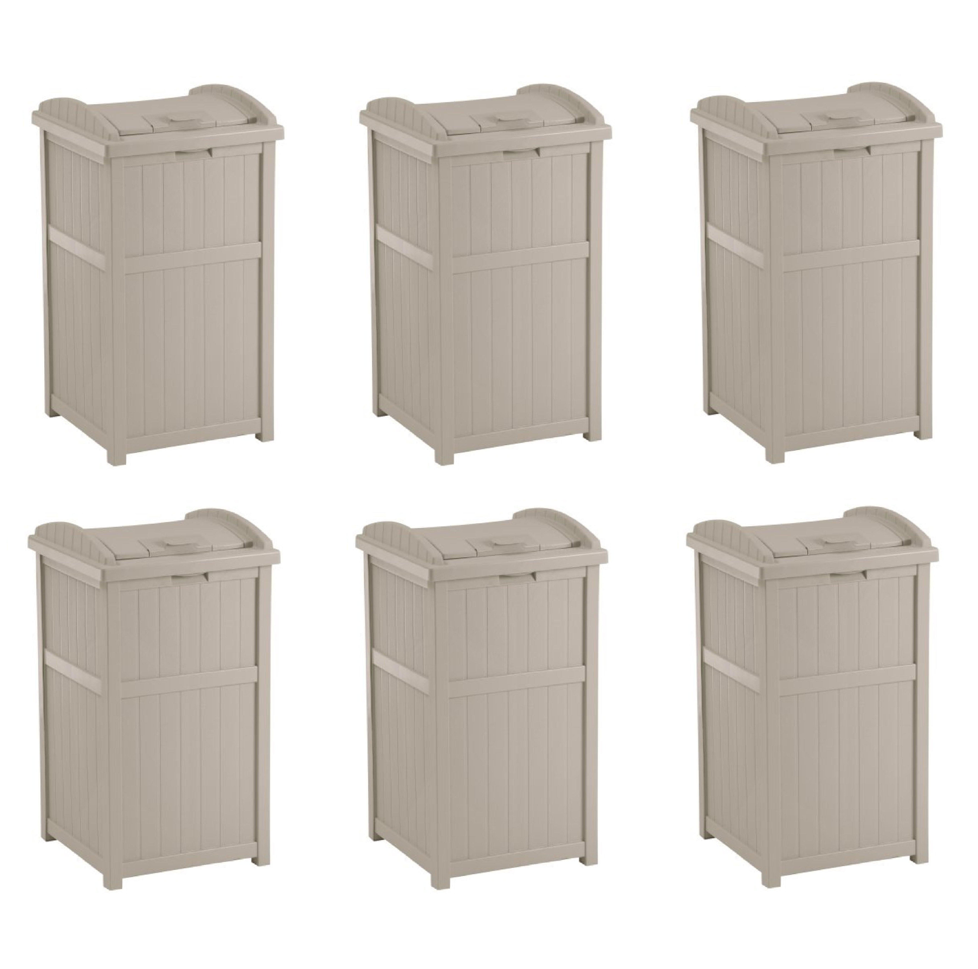 Suncast Trash Hideaway 33 Gallon Resin Outdoor Garbage Container, Taupe (6 Pack)