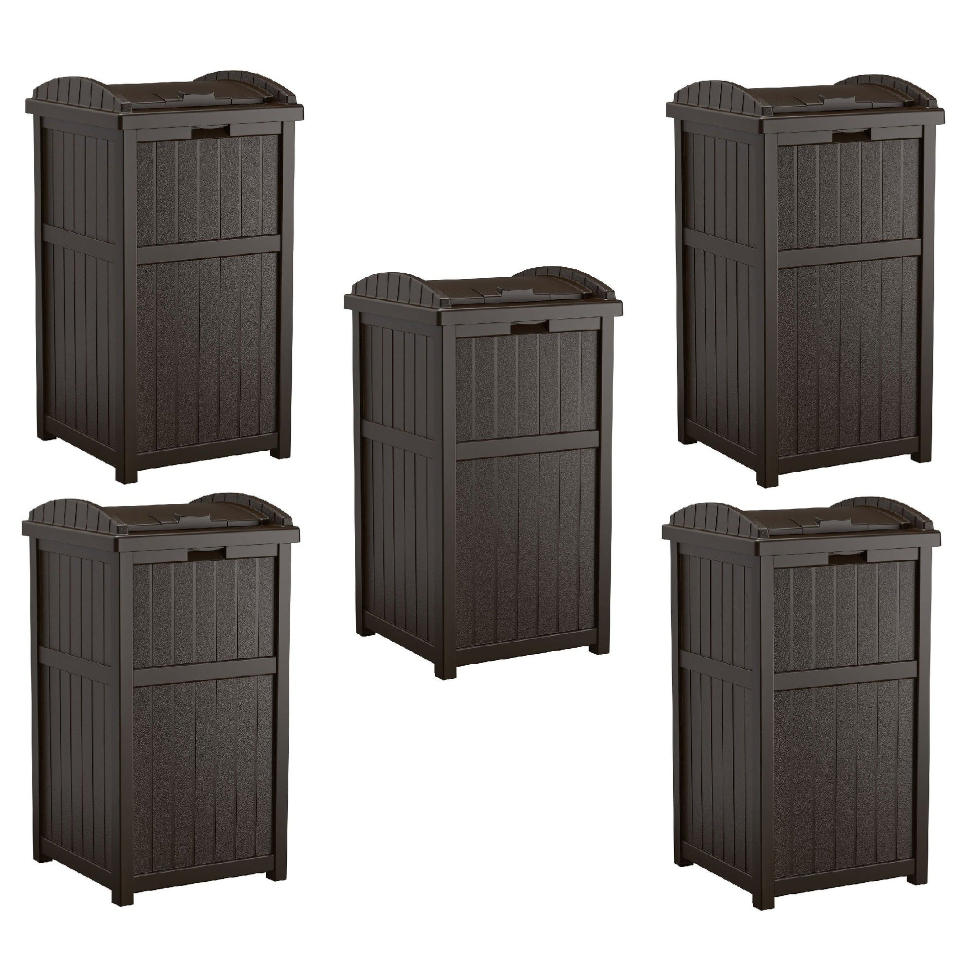 Have a convenient but stylish place to hide your trash with the 5 pack of the Hideaway Outdoor Garbage Waste Trash Bin from Suncast.