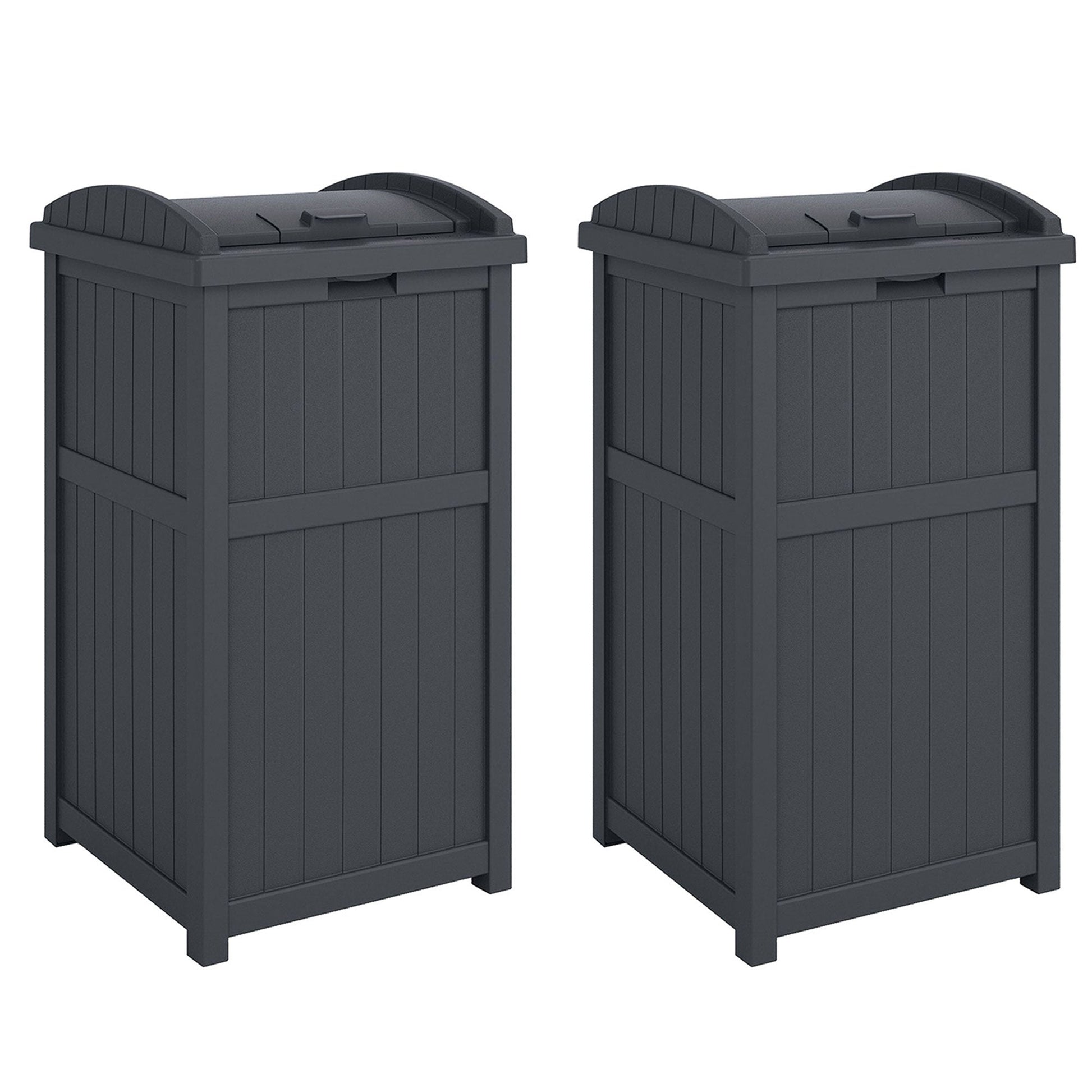 - Enhance the look of your backyard patios or decks by hiding your trash in this pack of (2) stylish outdoor trash cans