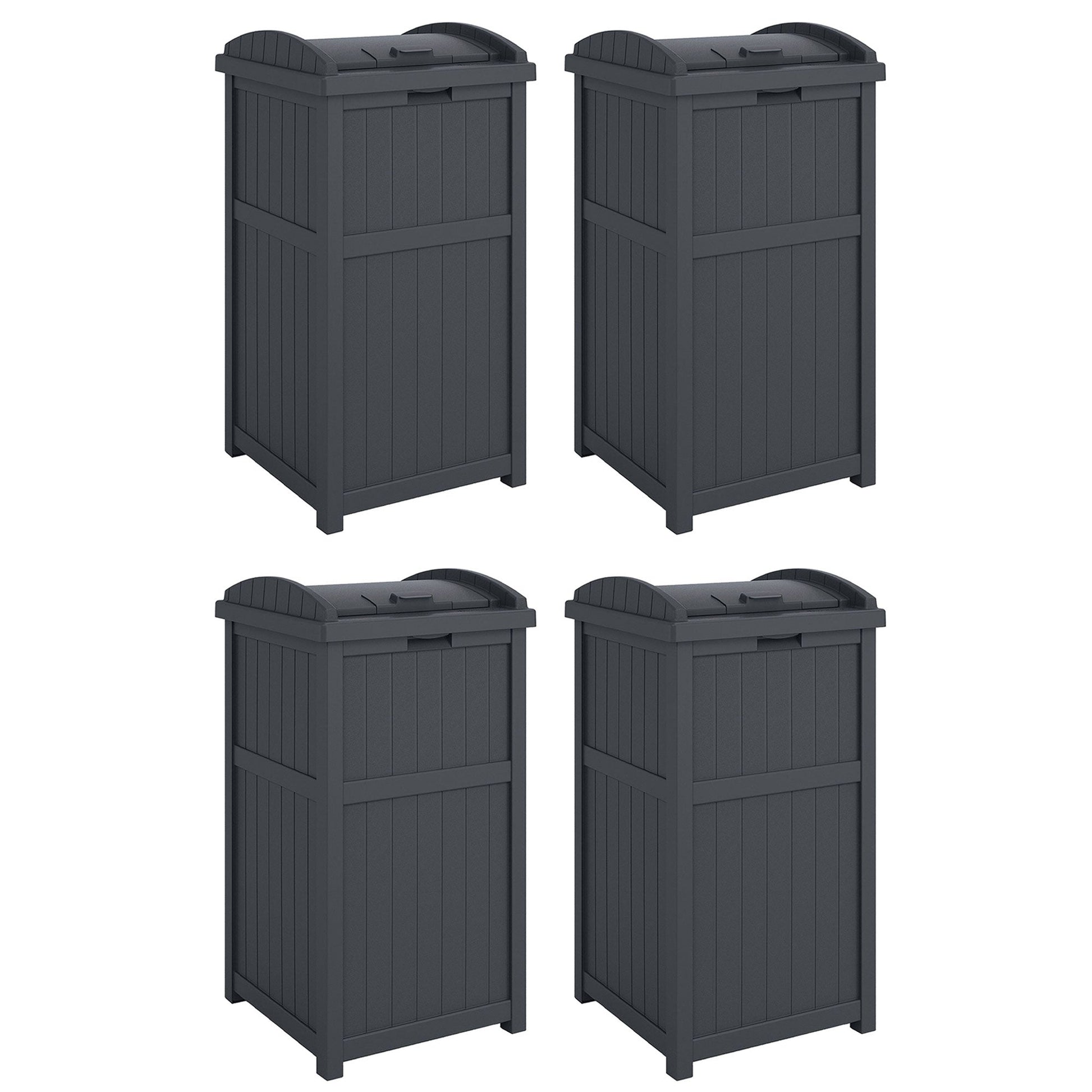 Suncast 30 Gallon Hideaway Trash Waste Bins for Outdoor, Cyberspace (4 Pack)
