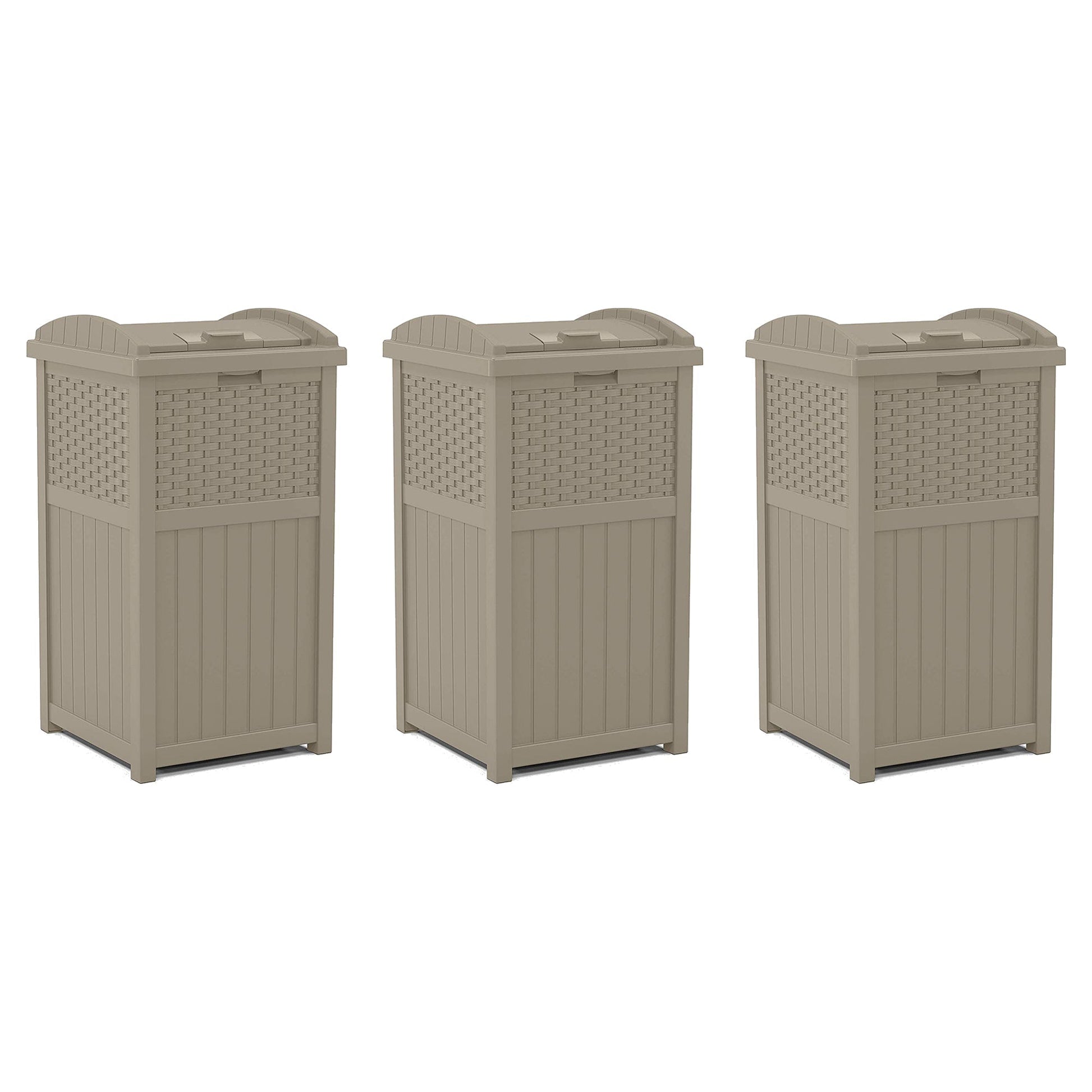 Don't ruin the appearance of your front lawn or backyard with a messy, unsightly garbage can. Instead, opt for a practical and stylish approach to keeping your trash in one place with the 3-pack of Suncast Wicker Plastic Outdoor Hideaway Trash Can with Latching Lid.